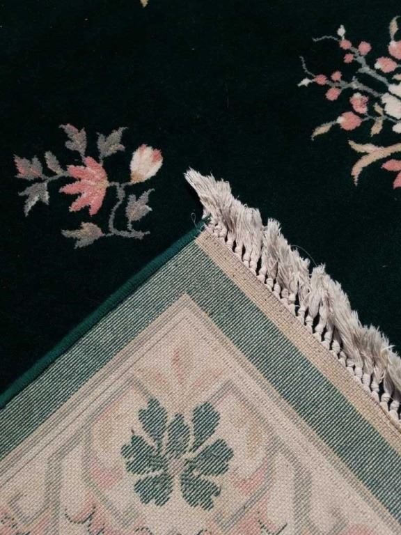 GREEN FRINGED AREA CARPET - 94 INCHES WIDE