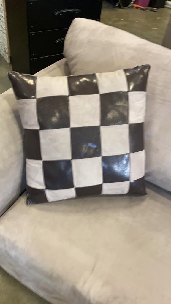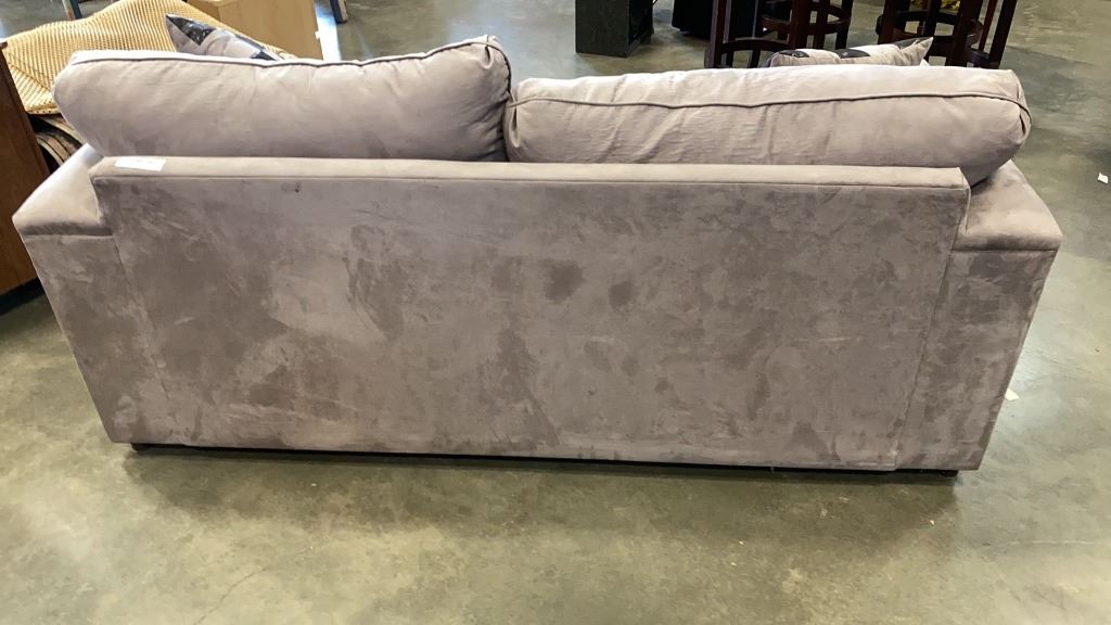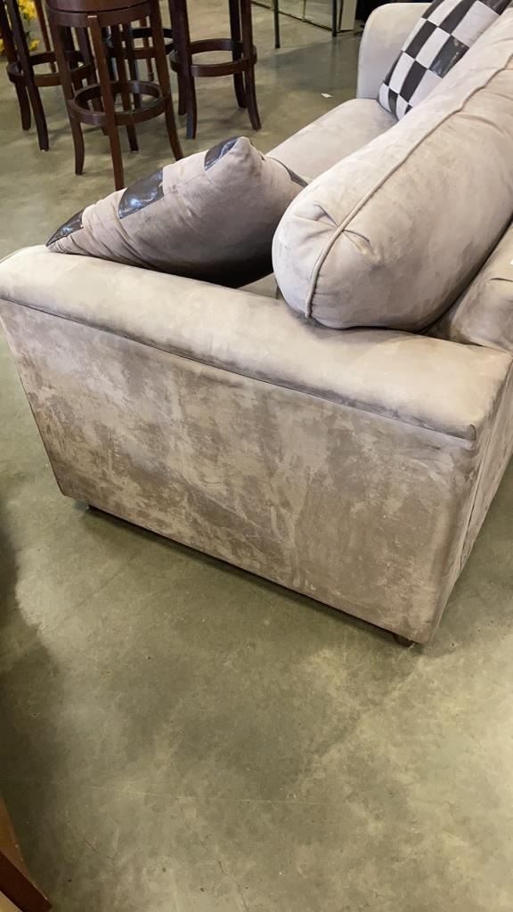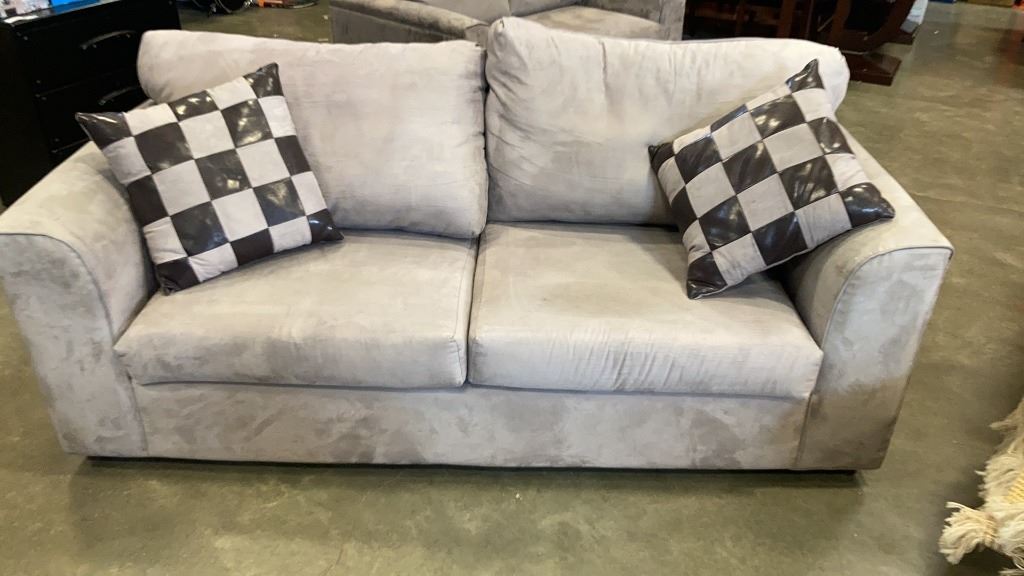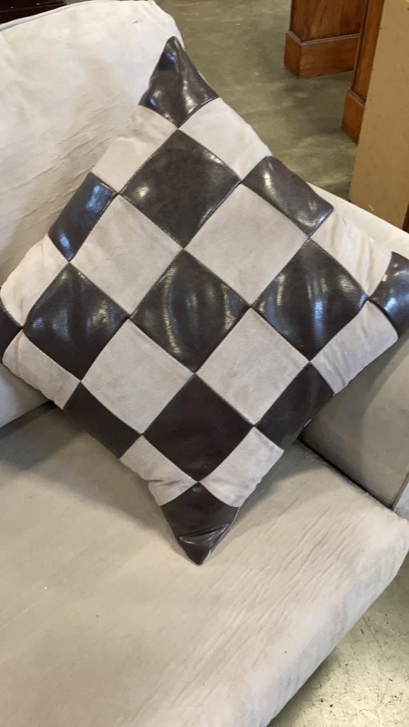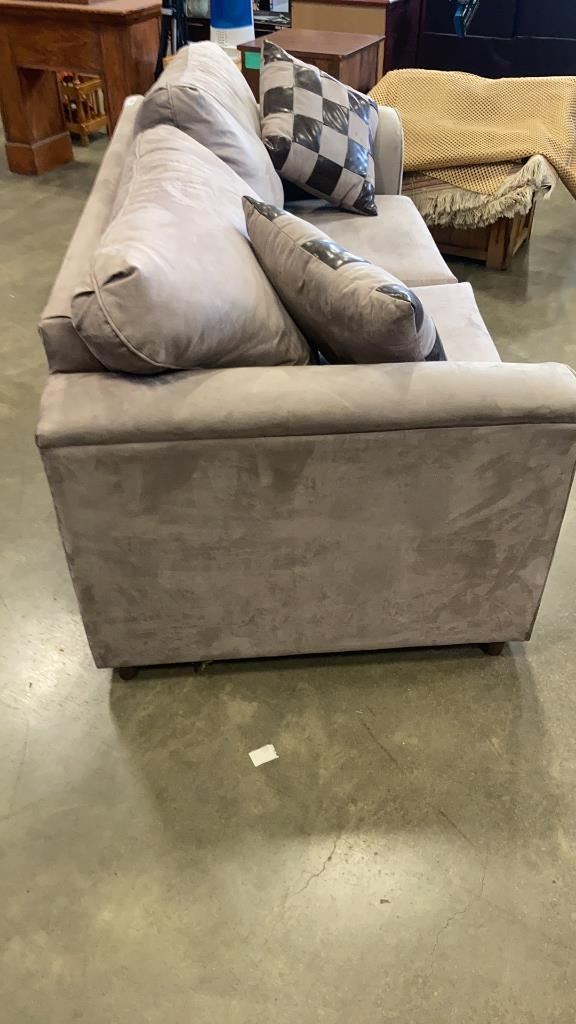 GREEN/GREY MICROFIBRE PILLOWBACK SOFA WITH THROW