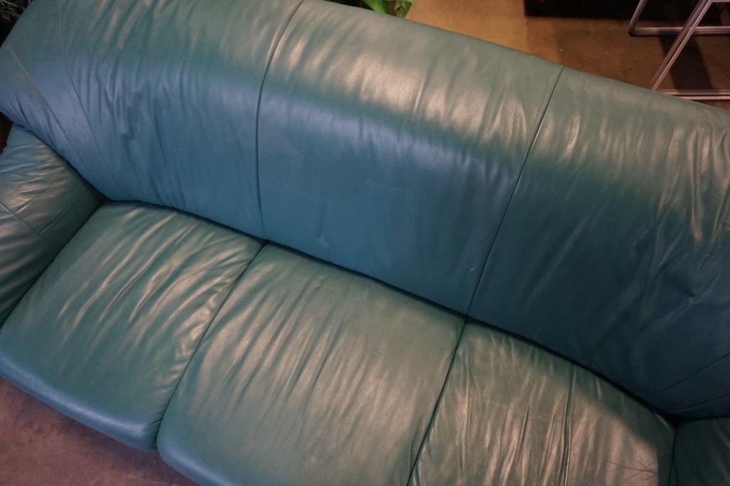 GREEN LEATHER SOFA AND LOVESEAT