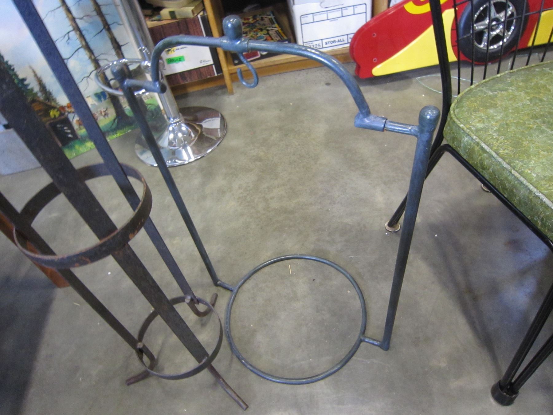 GREEN METAL SIGN HOLDER AND METAL PLANT STAND