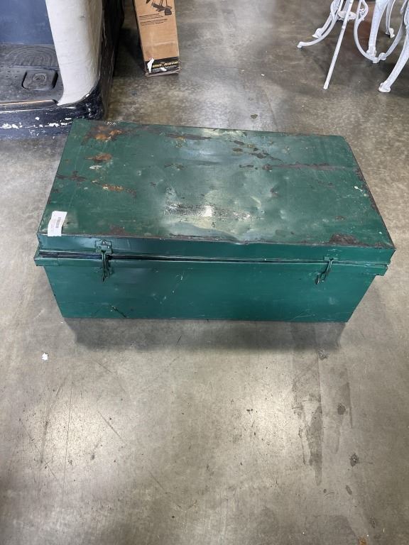 GREEN METAL STORAGE TRUNK