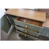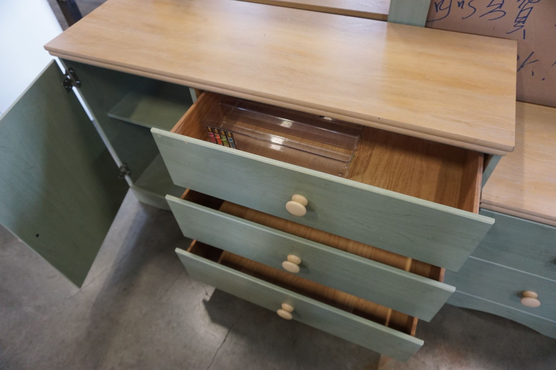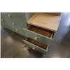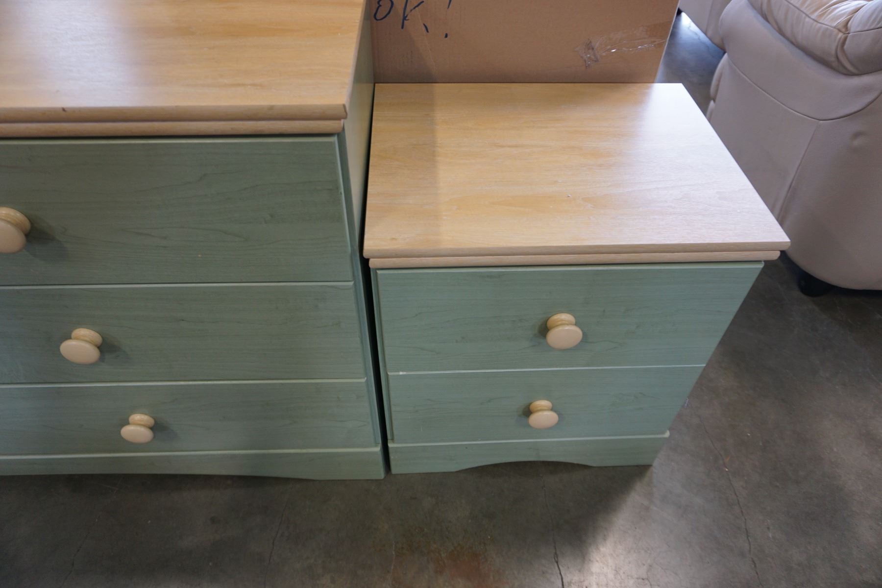 GREEN & TAN 3 DRAWER & 1 DOOR DRESSER W/ MIRROR & 2 DRAWER NIGHT STAND