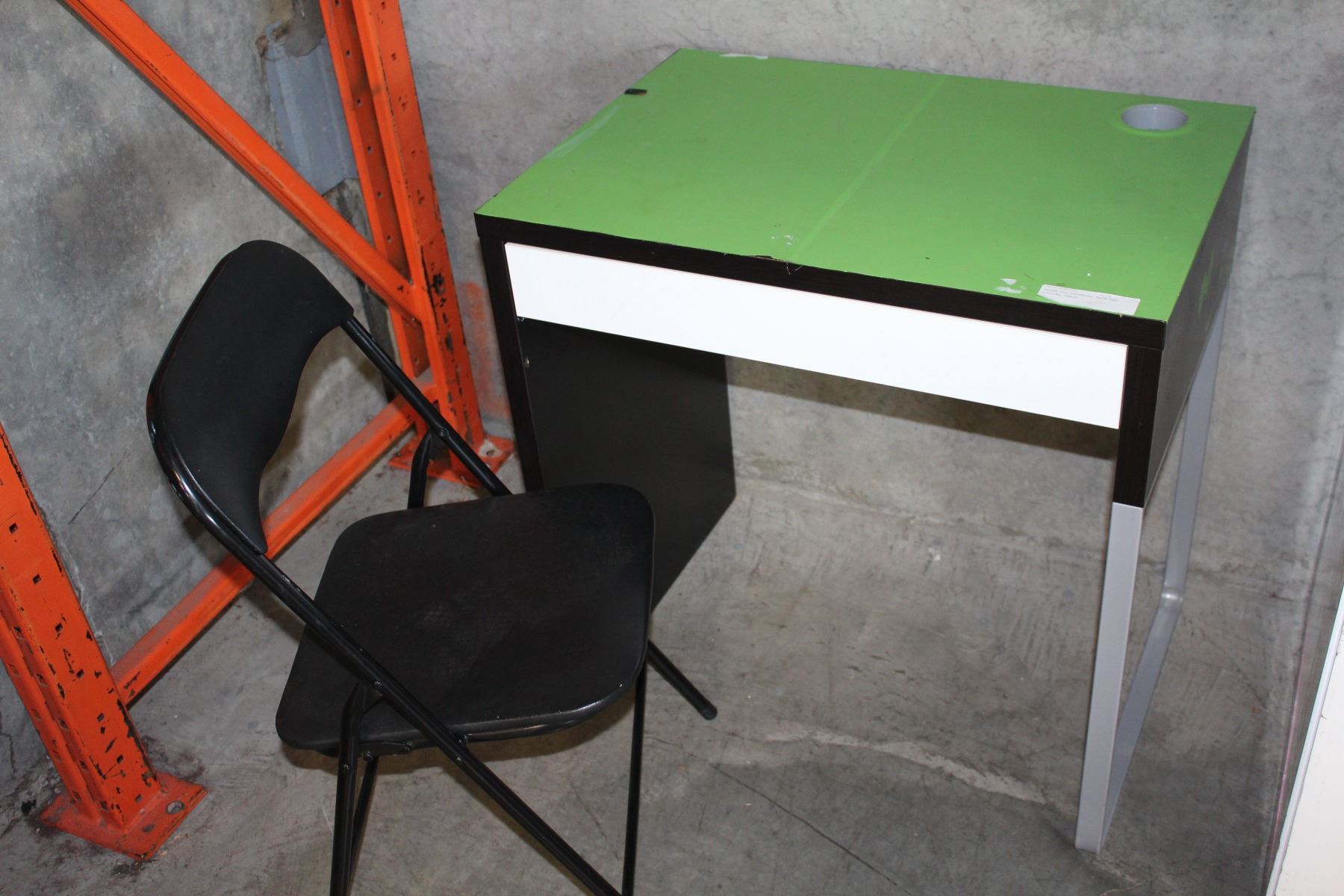 GREEN TOP ESPRESSO DESK AND FOLDING CHAIR