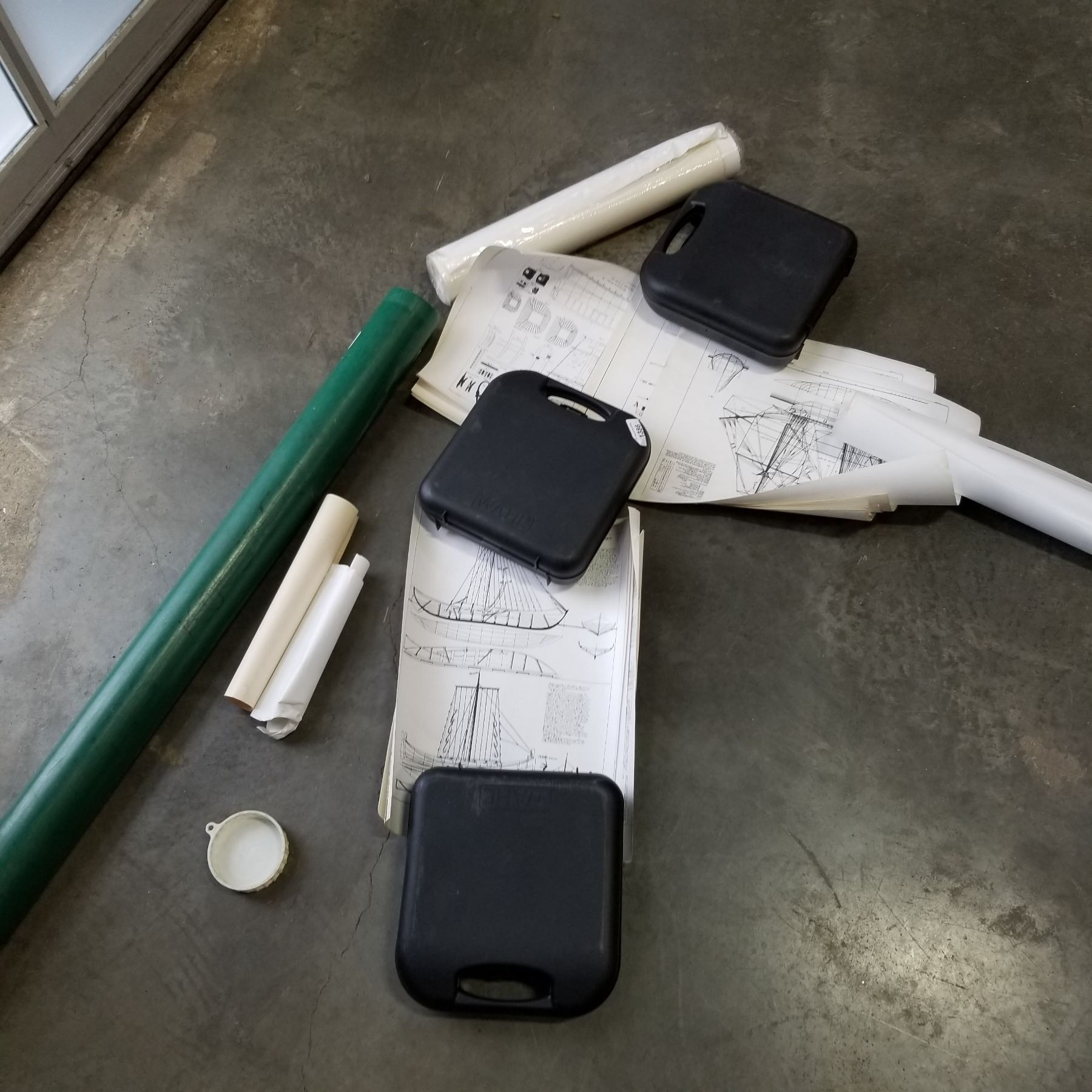 GREEN TUBE OF SHIP CROSS SECTIONS AND BLUE PRINTS
