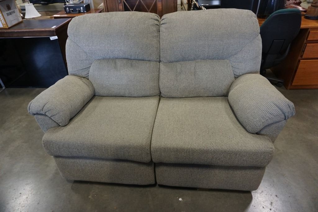 GREEN UPHOLSTERED DOUBLE RECLINING LOVESEAT