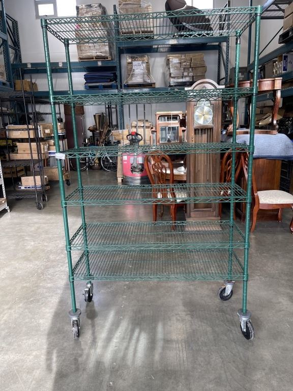 GREEN WIRE 18 X 48 X 80 INCH ROLLING RACK