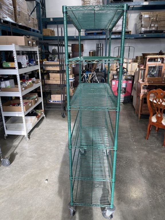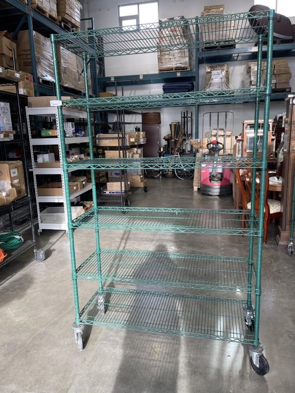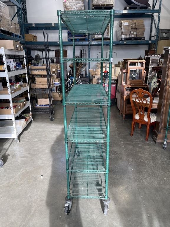 GREEN WIRE 18 X 48 X 80 INCH ROLLING RACK