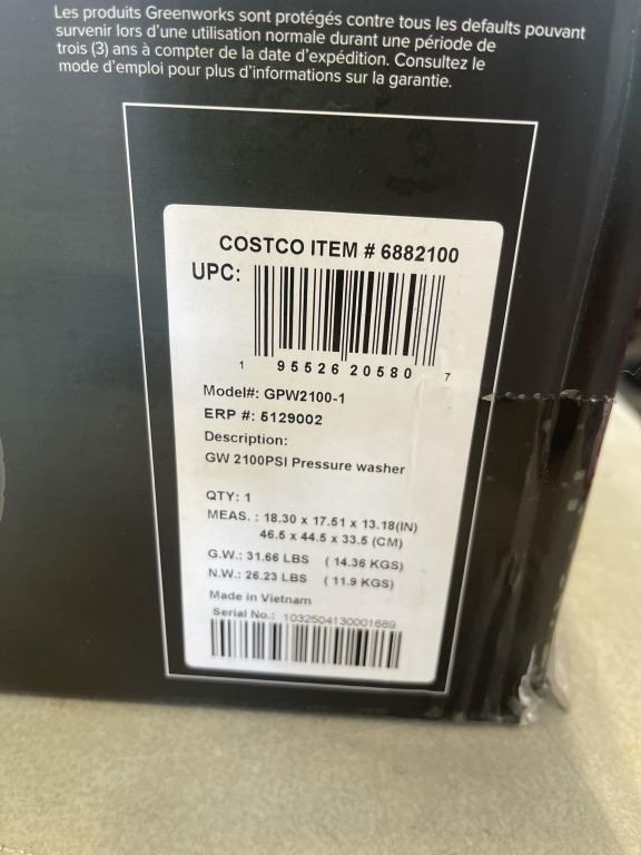 GREENWORKS 2100PSI PRESSURE WASHER