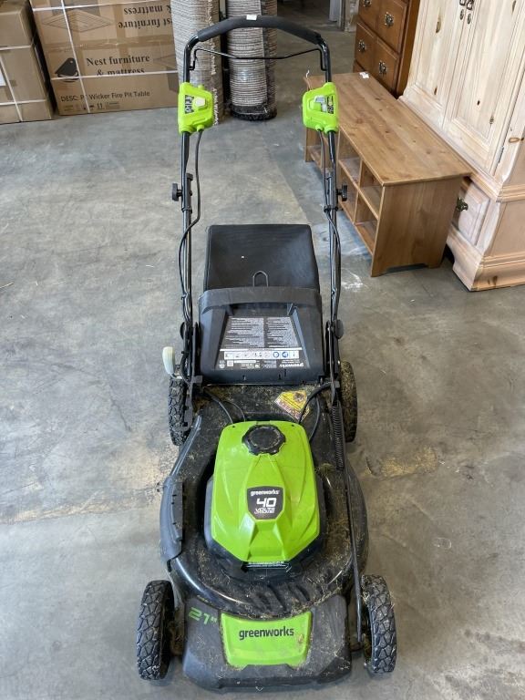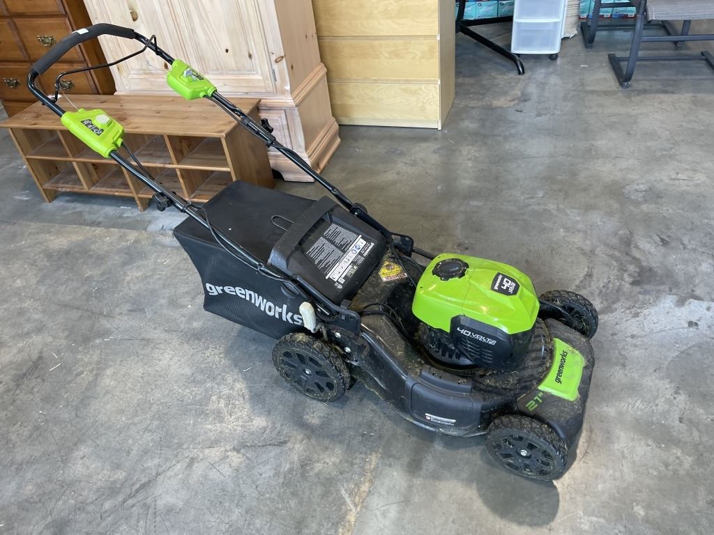 GREENWORKS 40V ELECTRIC LAWNMOWER WITH BAG, NO BATTERIES OR CHARGER, LANWMOWER WORKS