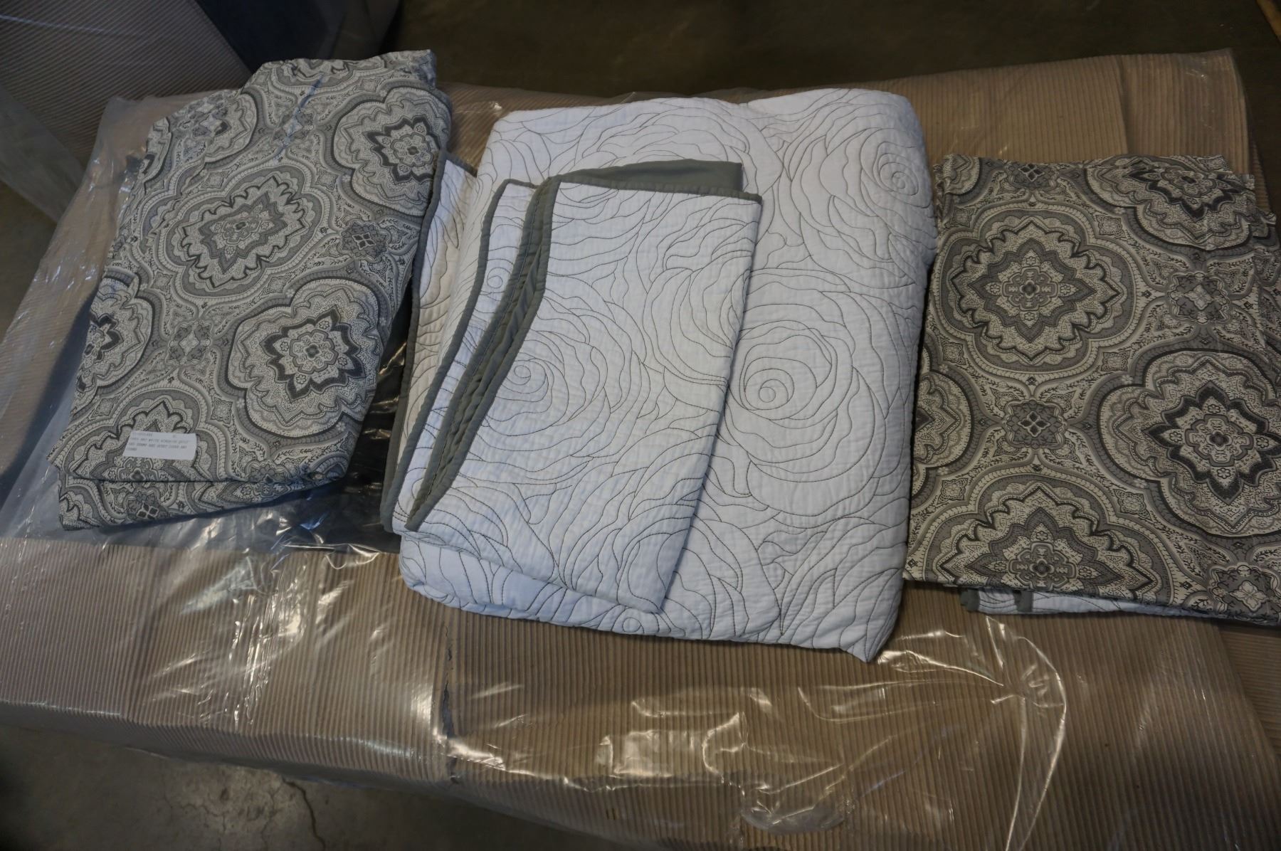 GREY AND WHITE KINGSIZE QUILT AND SHAMS AND DUVET COVER AND SHAMS