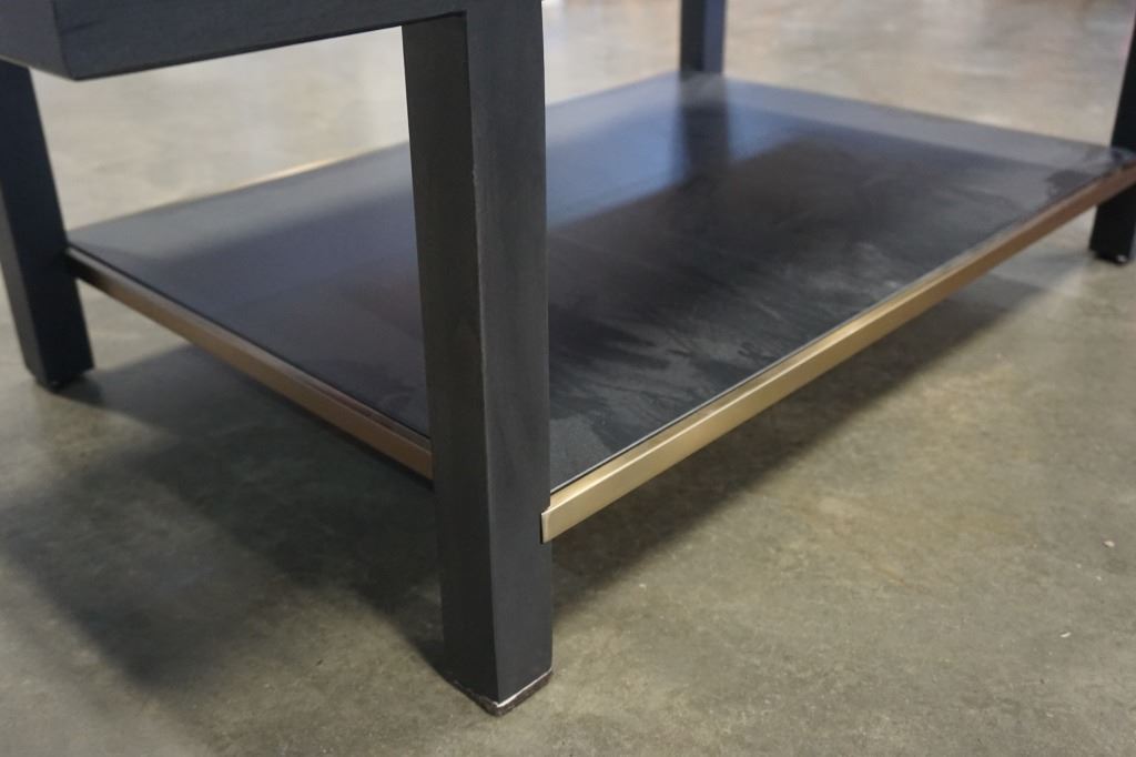 GREY COFFEE TABLE WITH BRASS ACCENTS