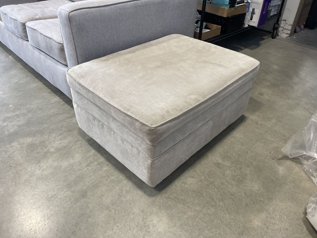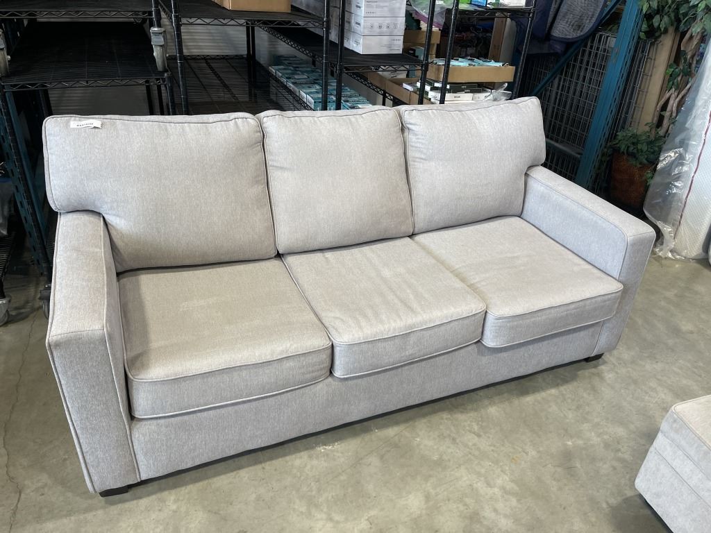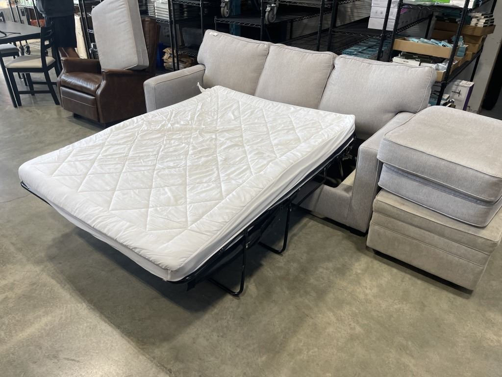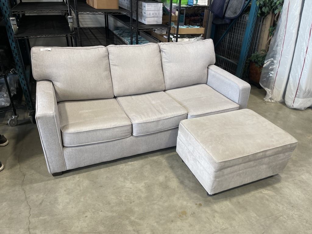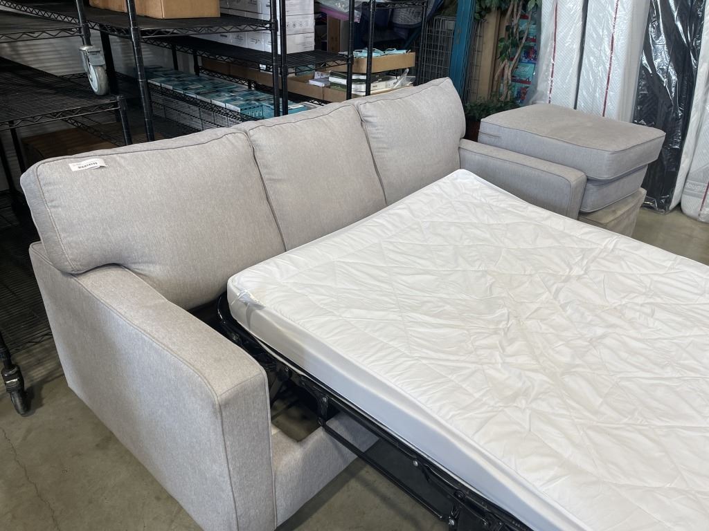 GREY FABRIC PULL OUT SLEEPER SOFA WITH ROLLING OTTOMAN