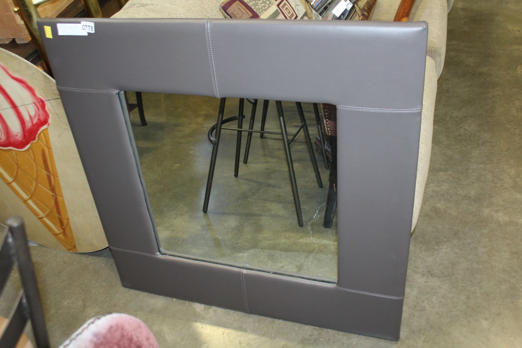 GREY LEATHER FRAMED MIRROR