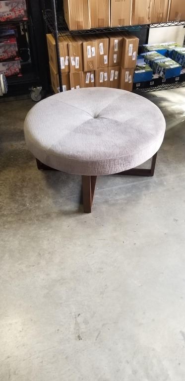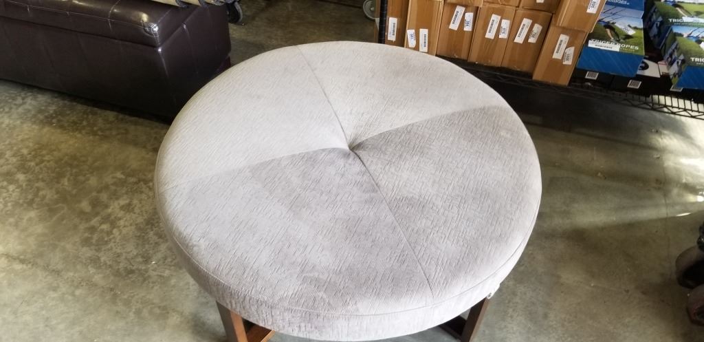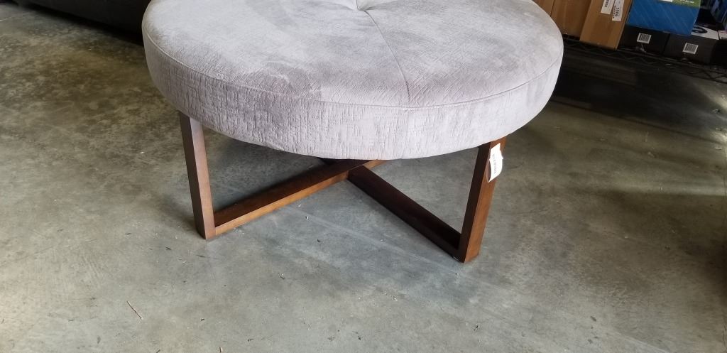 GREY MICROFIBER AND WOOD BASE OTTOMAN