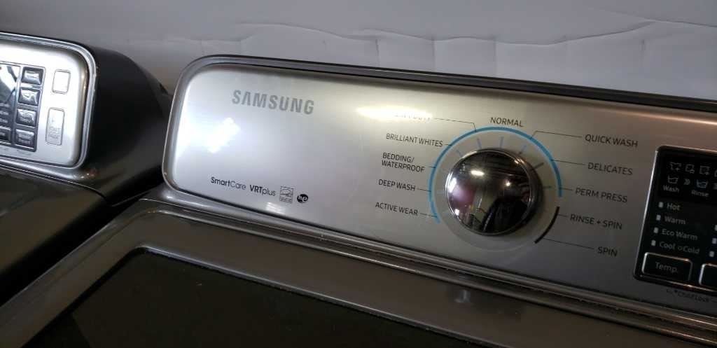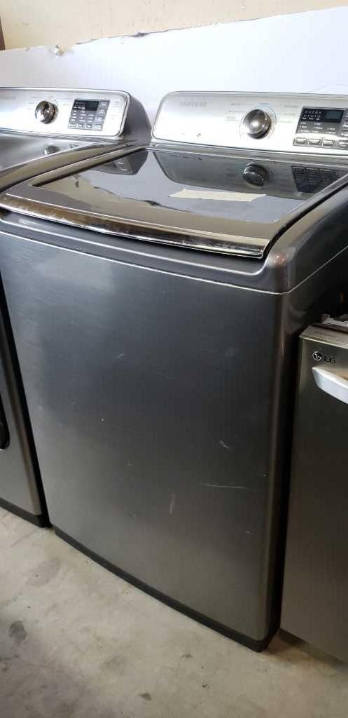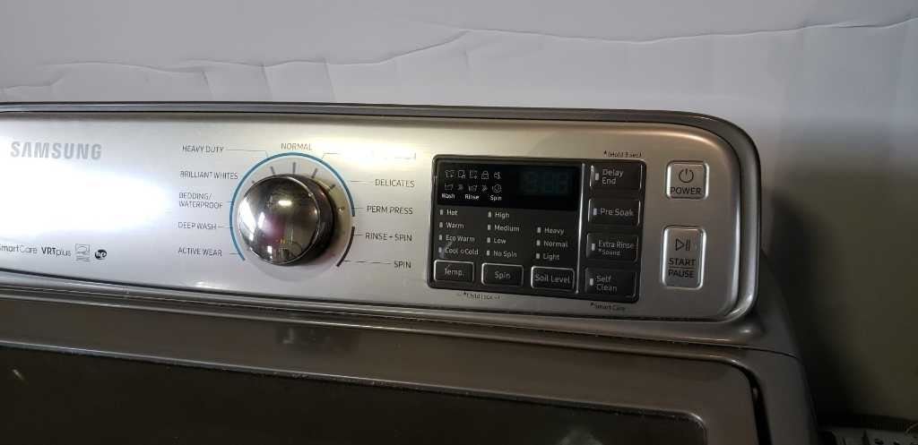 GREY SAMSUNG WASHER AND DRIER SMARTCARE VRT PLUS AND MULTISTEAM, MOISTURESENSOR, SMARTCARE - RUSTING ON INSIDE WASHER BUT WORKING