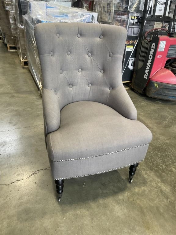 GREY TUFTED ACCENT CHAIR