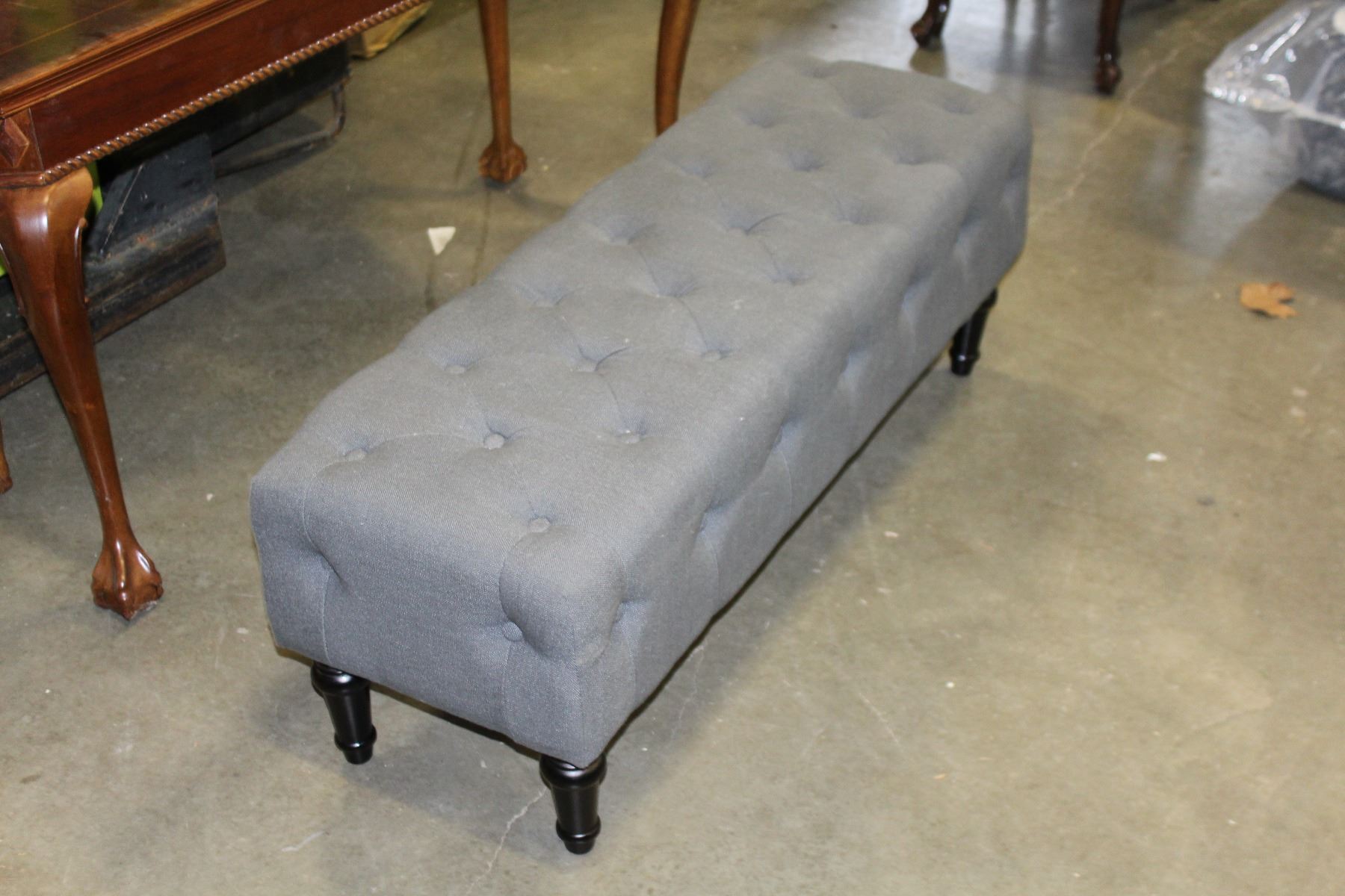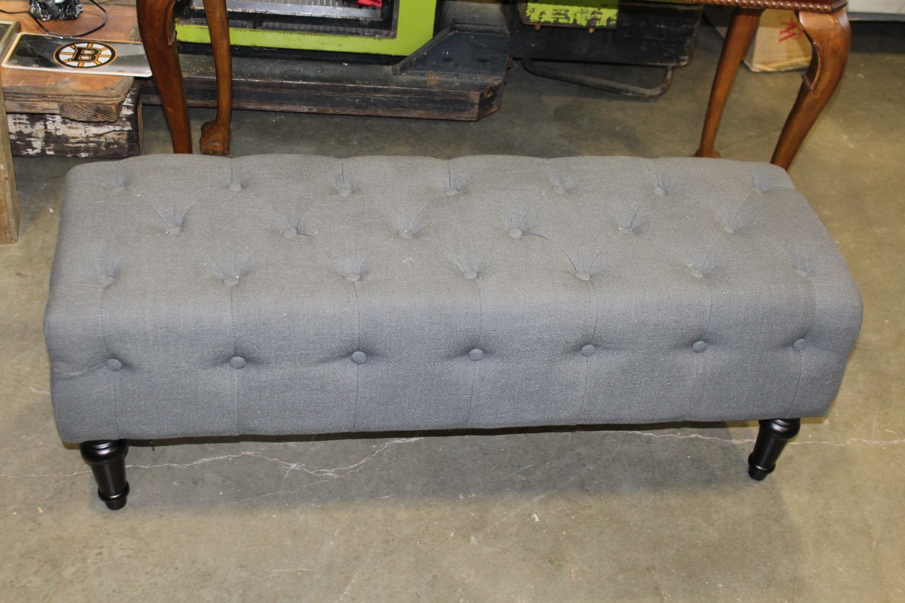 GREY TUFTED FABRIC BENCH / OTTOMAN