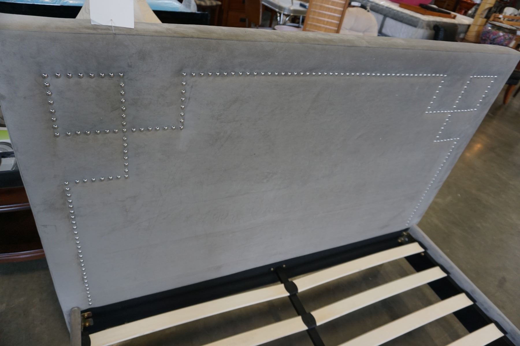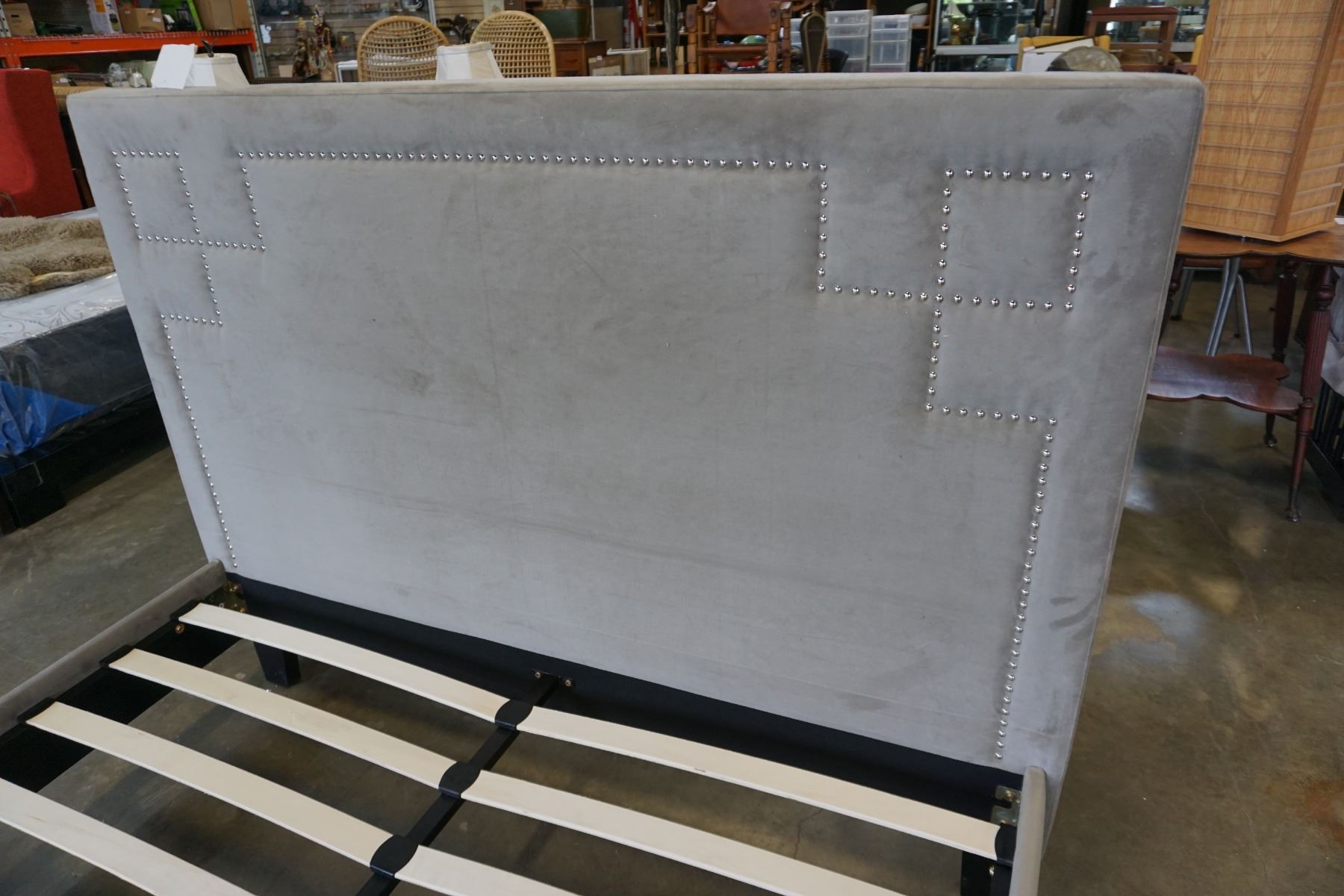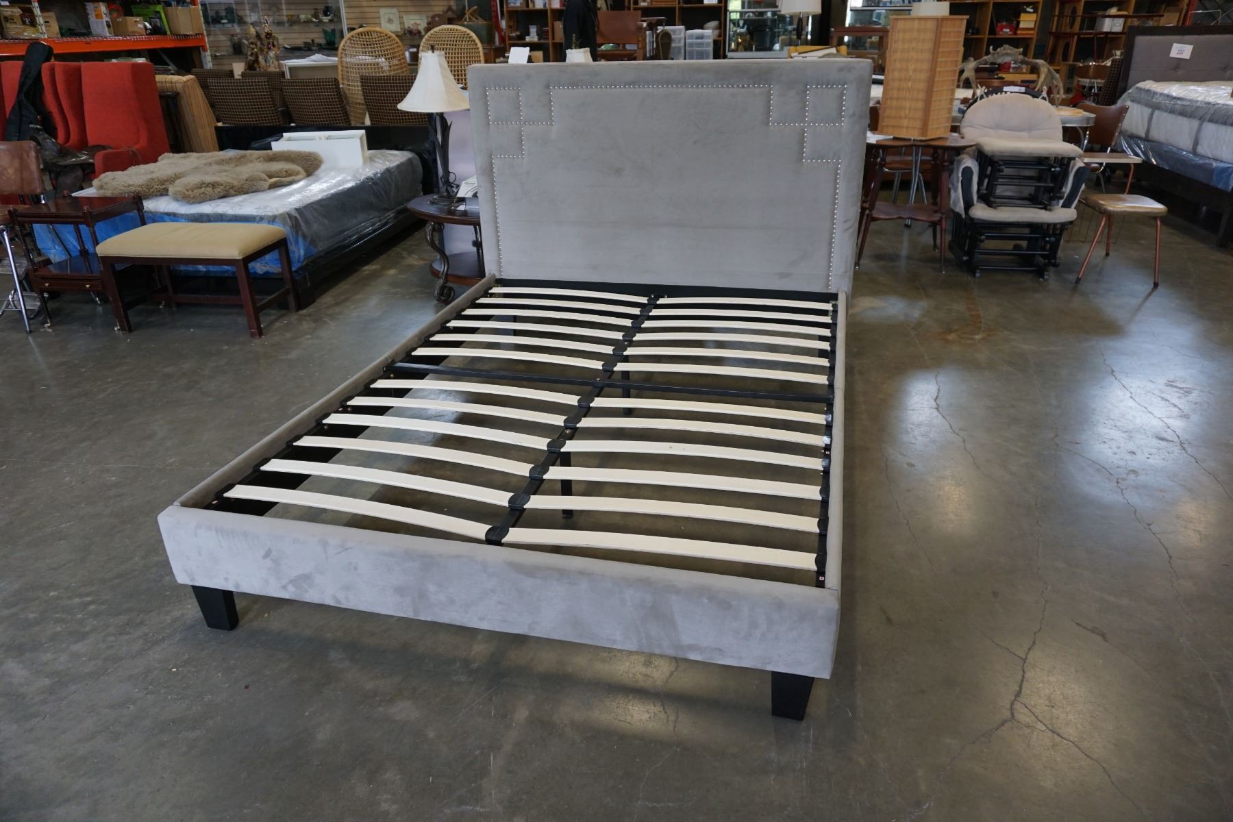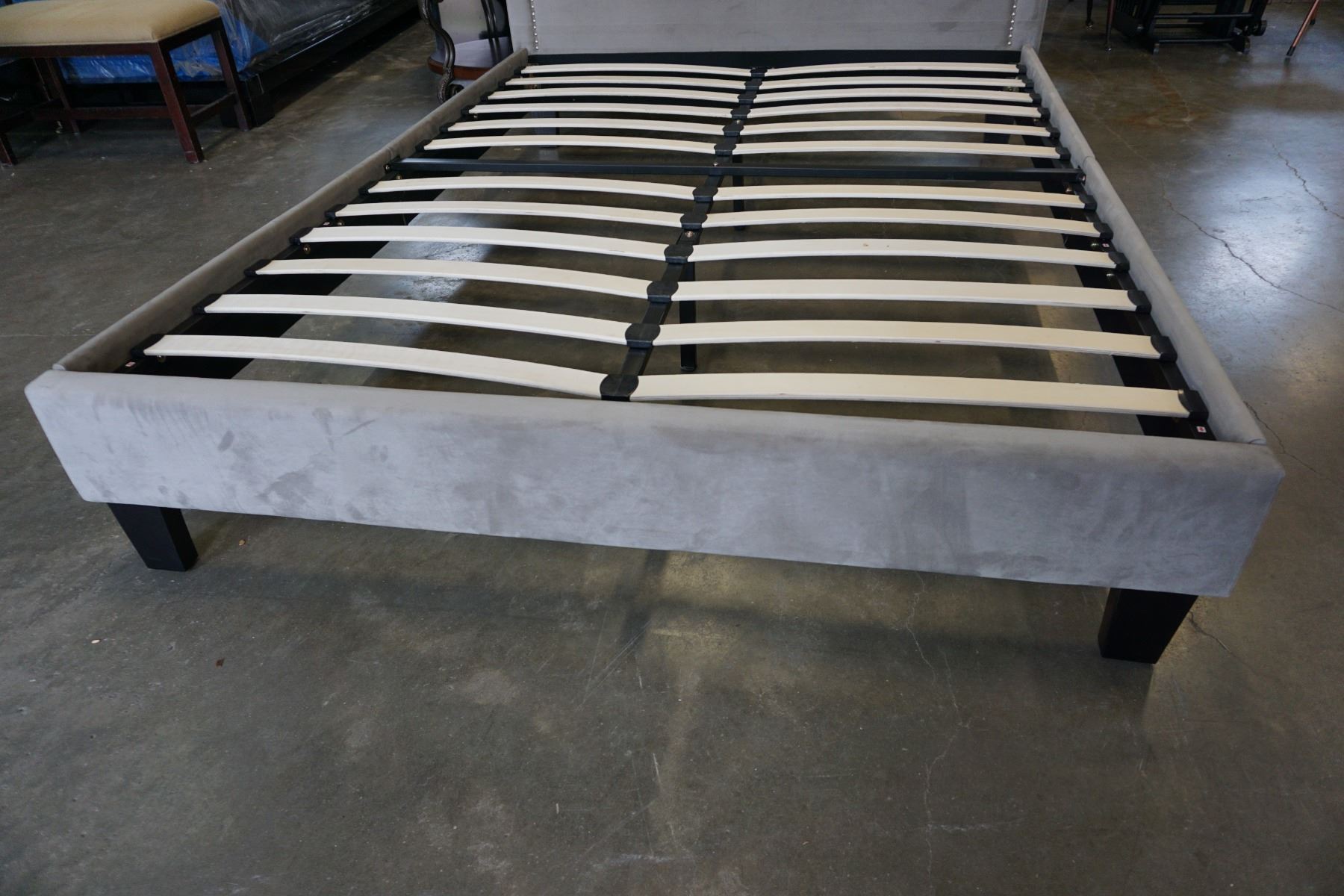 GREY VELVET QUEENSIZED PLATFORM BEDFRAME