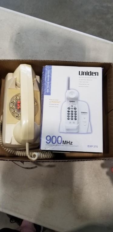 GTE AUTOMATIC ELECTRIC ROTARY PHONE AND UNIDEN HOME PHONE AND BRASS STUDY LIGHT