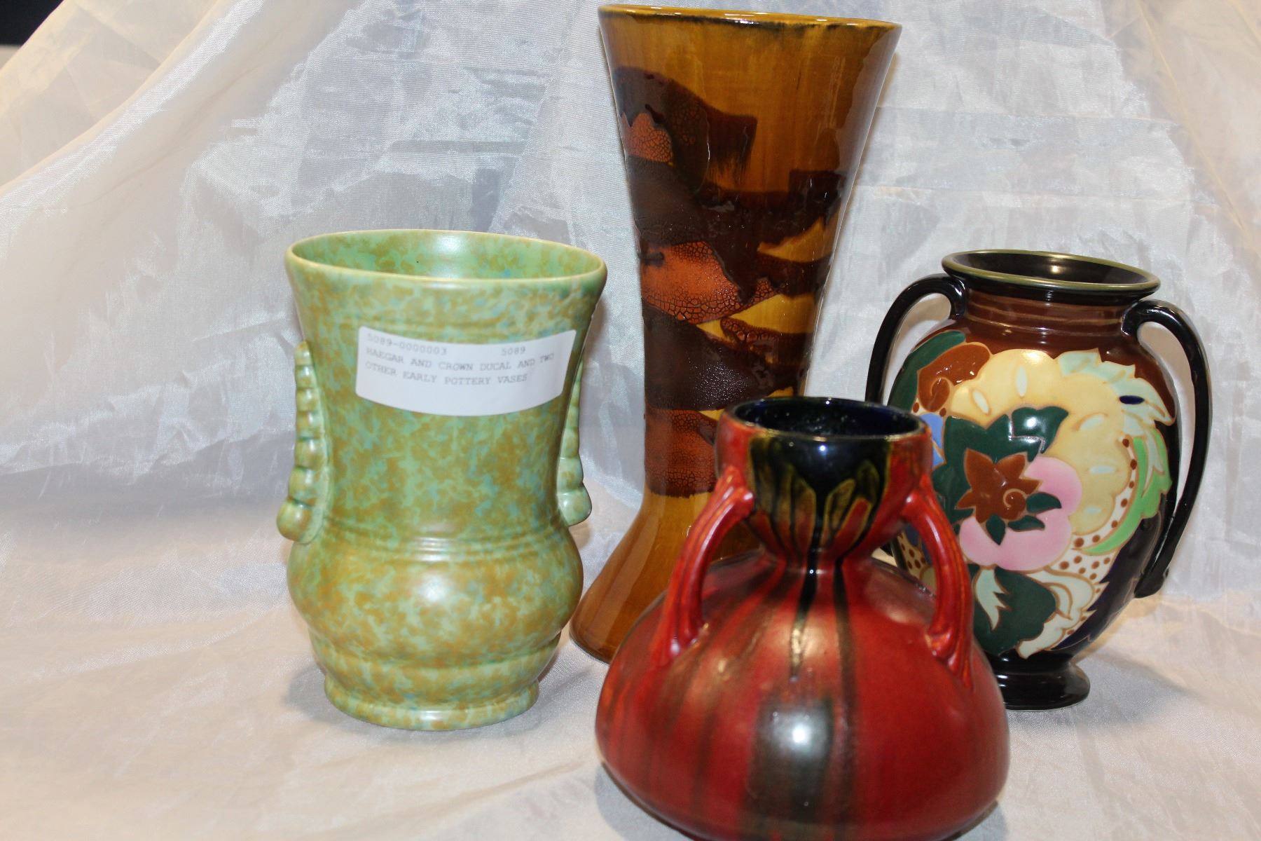 HAEGAR AND CROWN DUCAL AND TWO OTHER EARLY POTTERY VASES