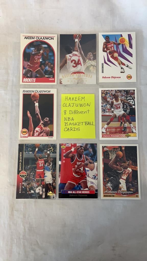 HAKEEM OLAJUWON - 8 DIFFERENT NBA BASKETBALL CARDS