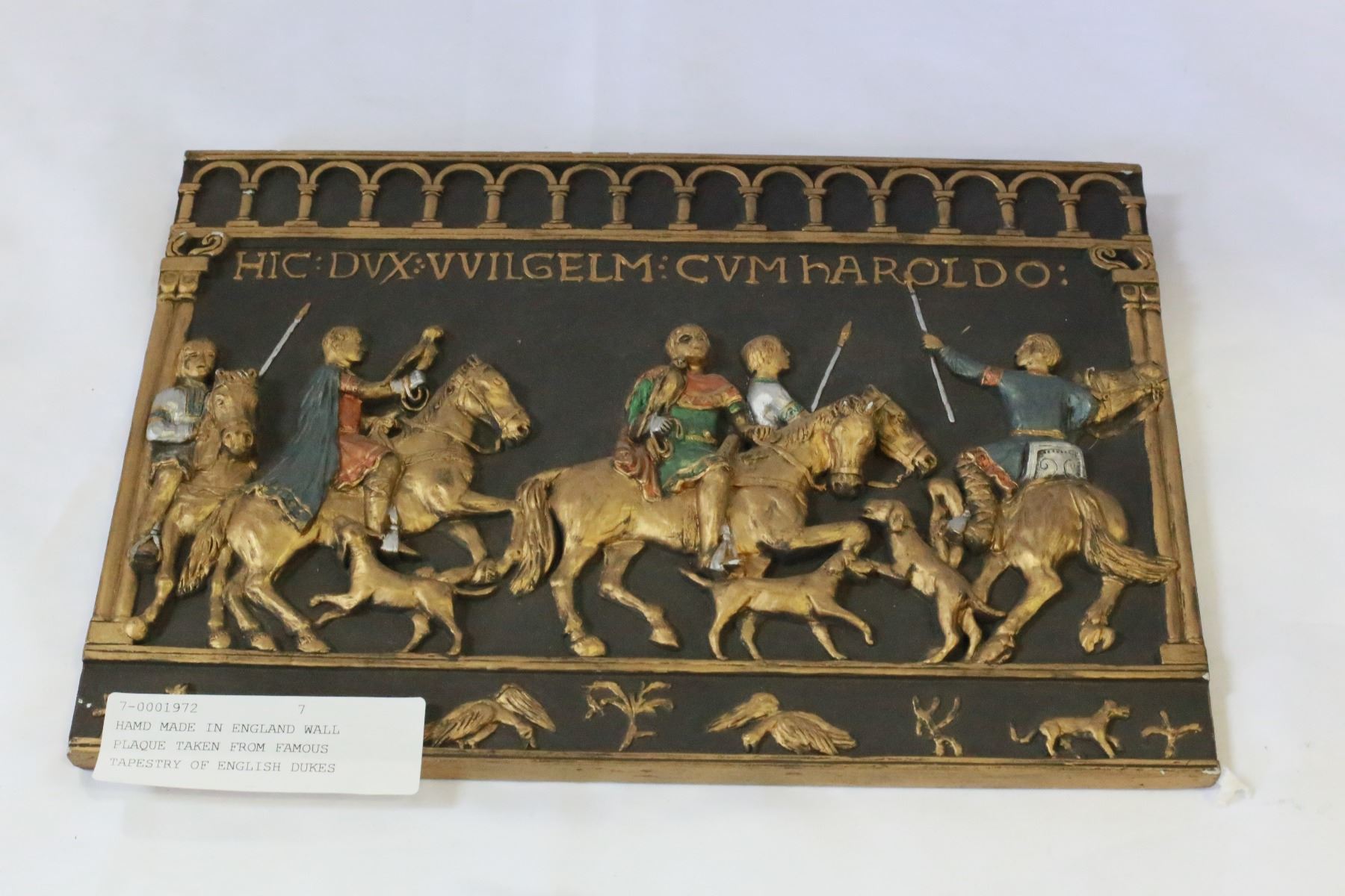 HAMD MADE IN ENGLAND WALL PLAQUE TAKEN FROM FAMOUS TAPESTRY OF ENGLISH DUKES