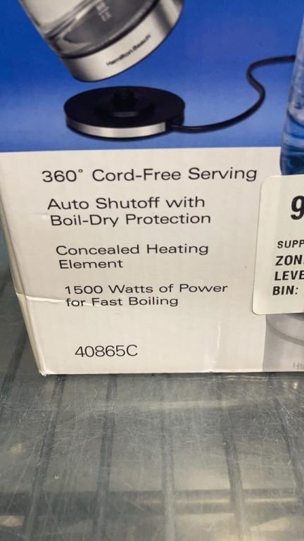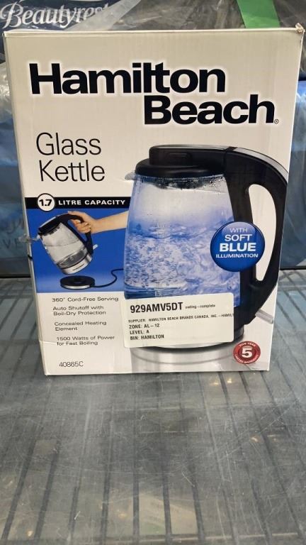 HAMILTON BEACH 1.7 L GLASS KETTLE TESTED AND WORKING, RETAIL $44