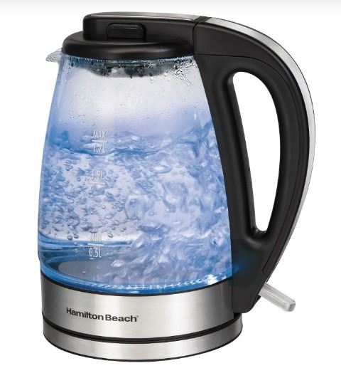 HAMILTON BEACH 1.7L GLASS ELECTRIC KETTLE - TESTED WORKING, RETAIL $44