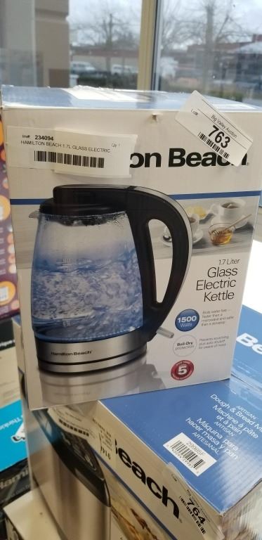 HAMILTON BEACH 1.7L GLASS ELECTRIC KETTLE - TESTED WORKING