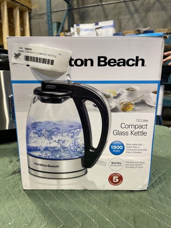 HAMILTON BEACH 1L COMPACT KETTLE - TESTED WORKING, RETAIL $44
