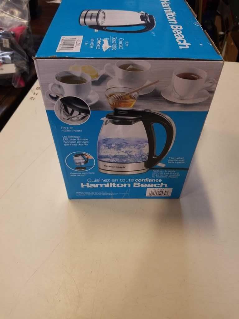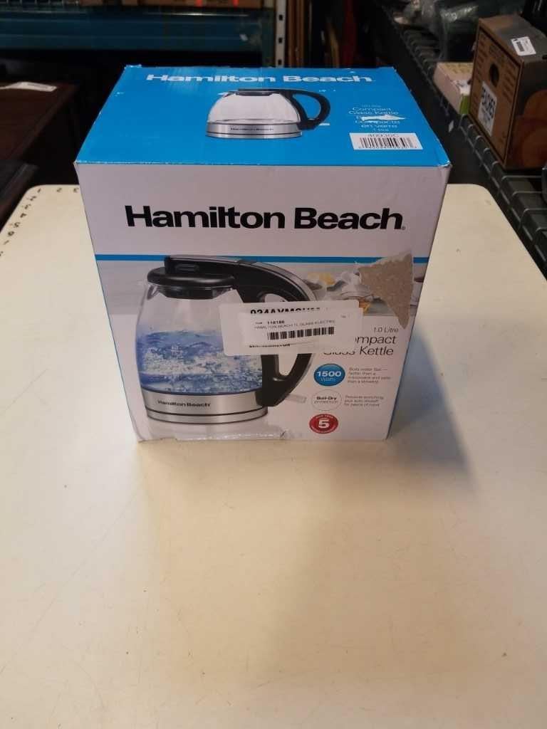 HAMILTON BEACH 1L GLASS ELECTRIC KETTLE - TESTED WORKING - RETAIL $49