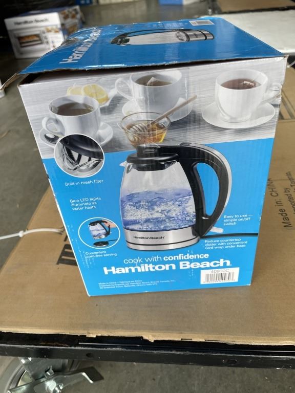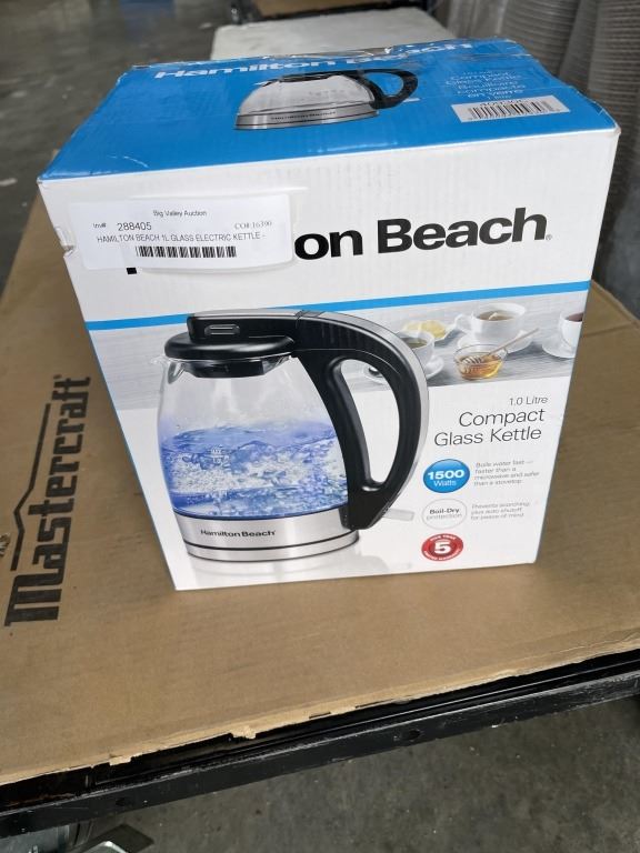 HAMILTON BEACH 1L GLASS ELECTRIC KETTLE - TESTED WORKING