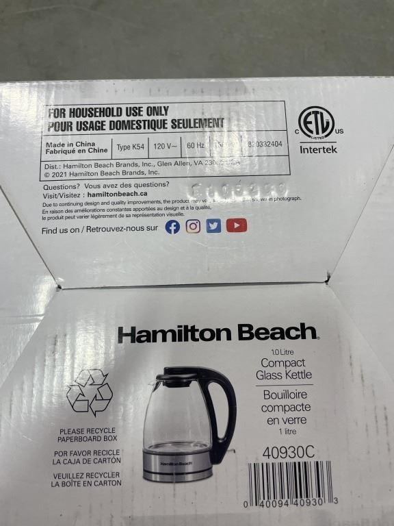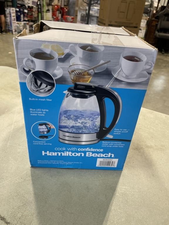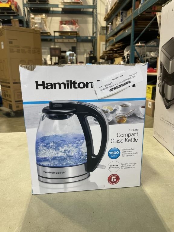 HAMILTON BEACH 1L GLASS ELECTRIC KETTLE - TESTED WORKING