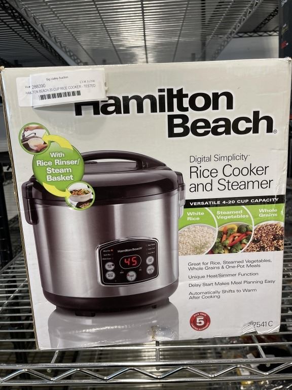 HAMILTON BEACH 20-CUP RICE COOKER - TESTED WORKING, RETAIL $64