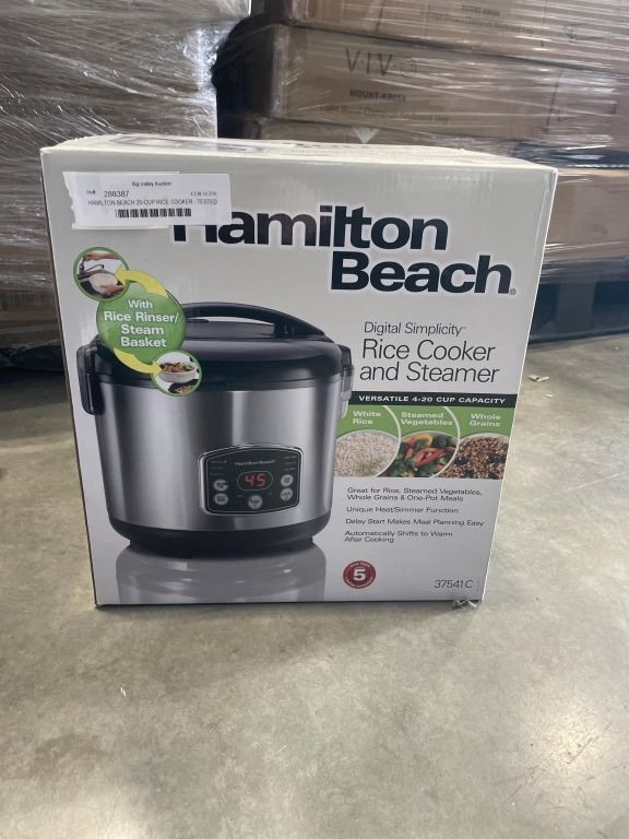 HAMILTON BEACH 20-CUP RICE COOKER - TESTED WORKING, RETAIL $64
