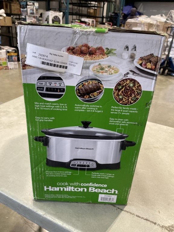 HAMILTON BEACH 6QT SLOW COOKER - TESTED WORKING