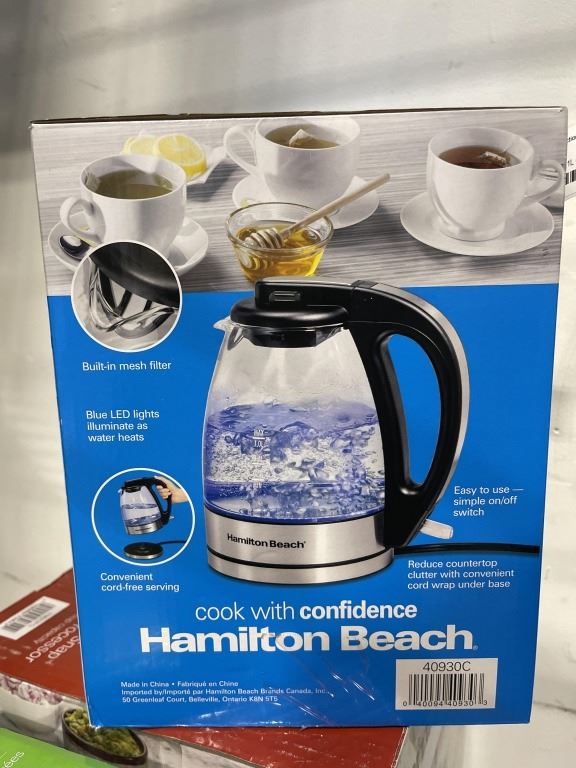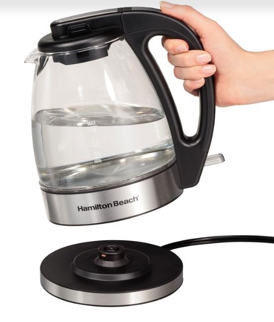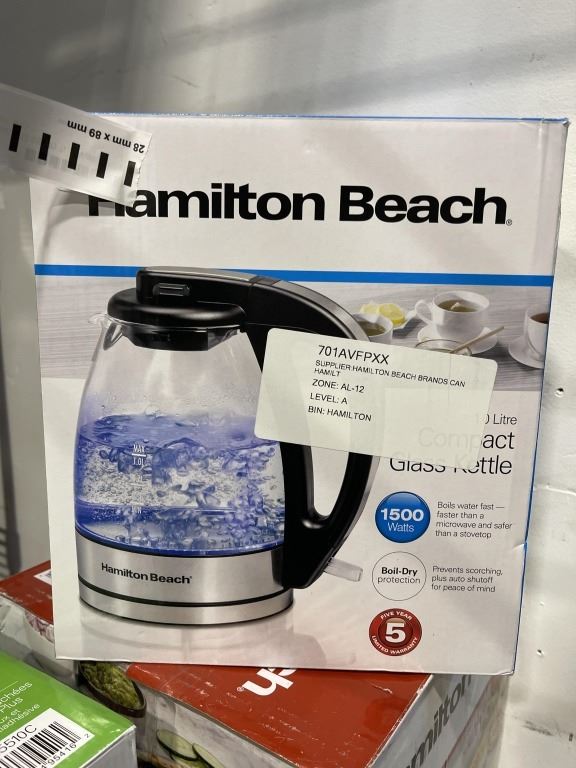 HAMILTON BEACH COMPACT 1L GLASS ELECTRIC KETTLE - TESTED WORKING