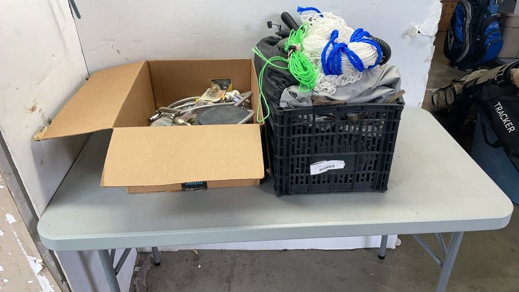 HAMMOCK, QUEENSIZE INFLATEABLE MATTRESS AND BOX OF HARDWARE