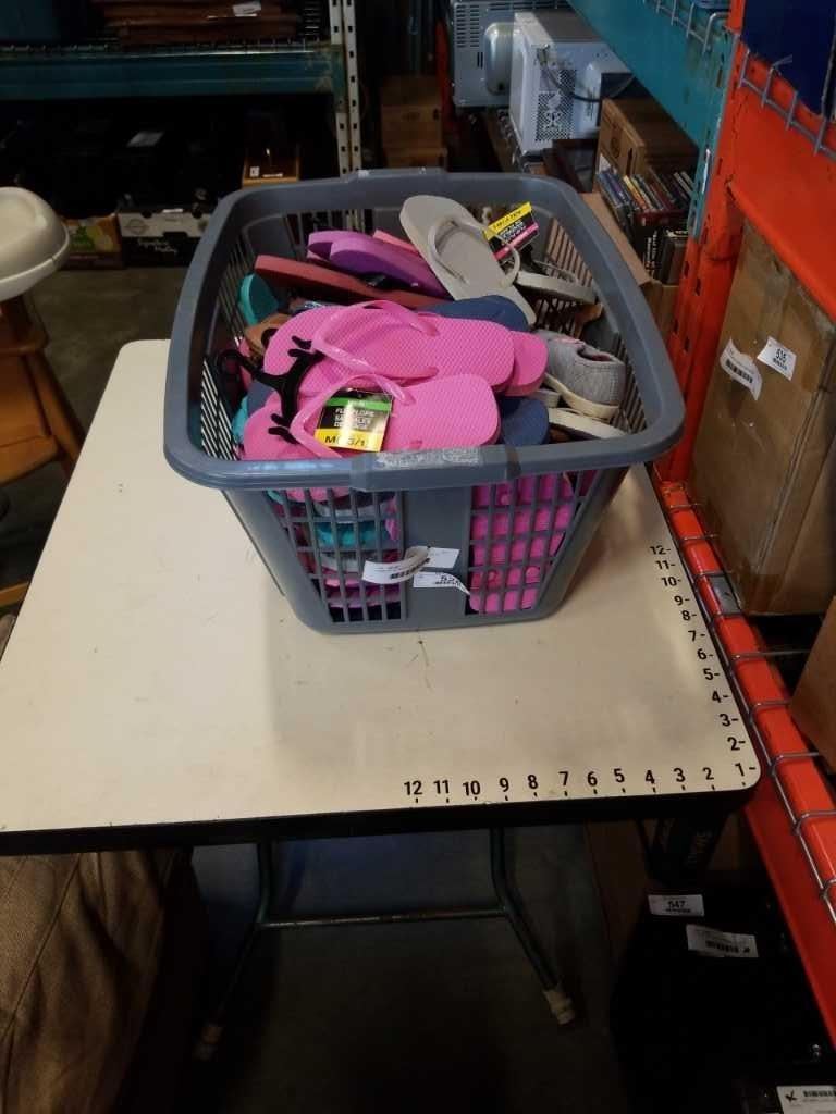 HAMPER OF NEW FLIP FLOPS AND HATS