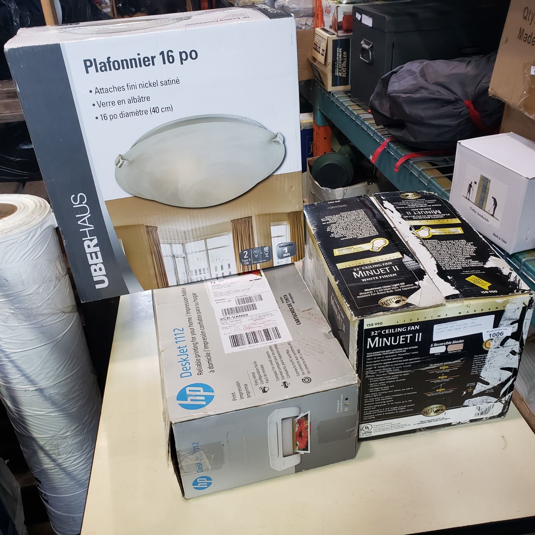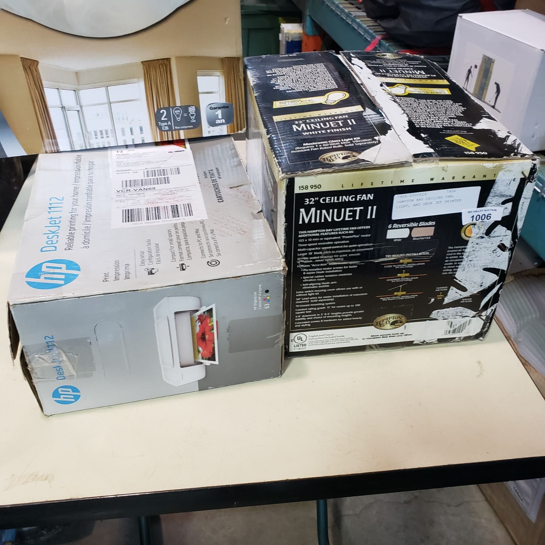 HAMPTON BAY CEILING FAN, LIGHT, AND DESK JET PRINTER