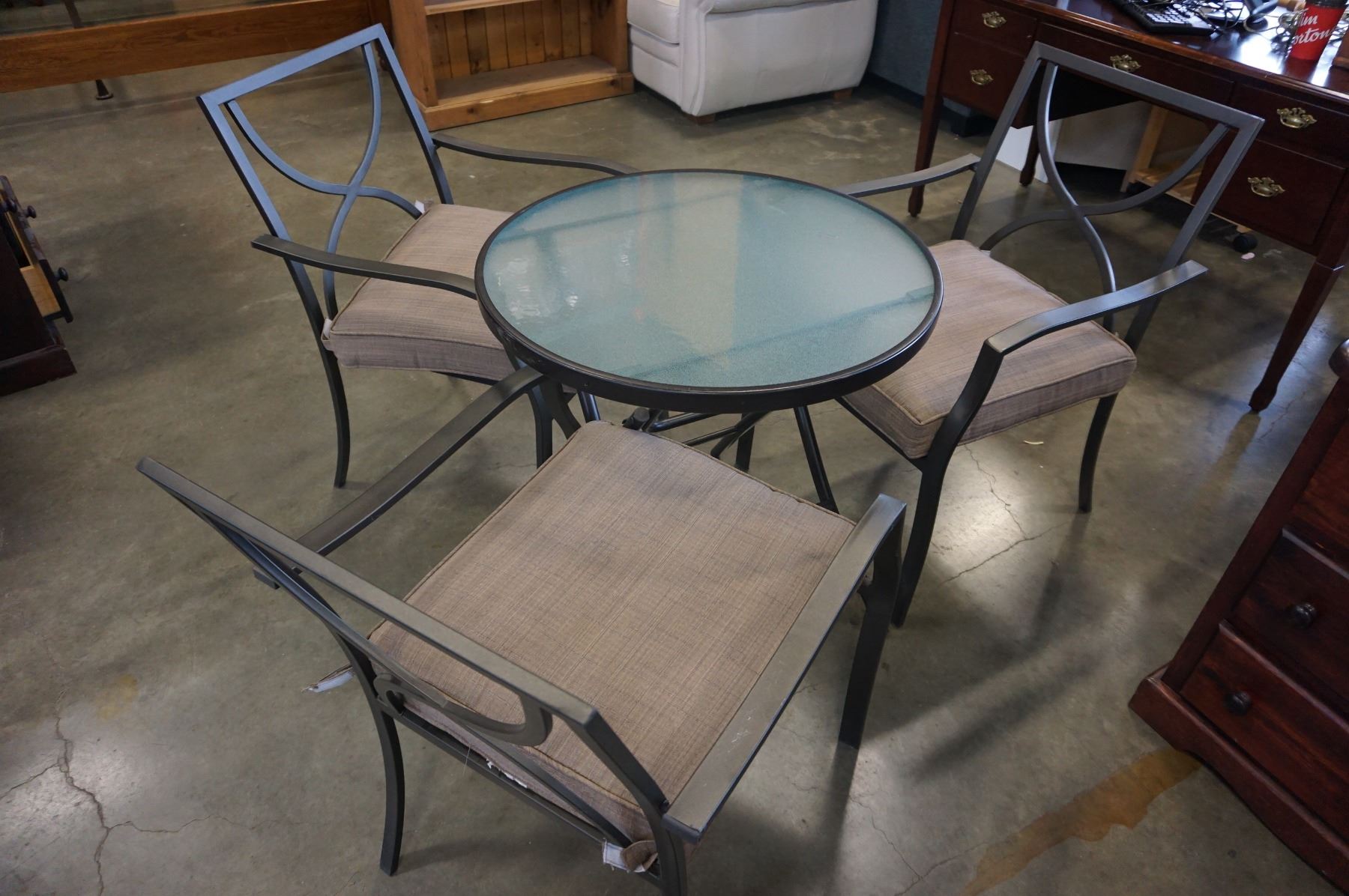 HAMPTON BAY FOLDING PATIO TABLE W/ 3 STACKING CHAIRS