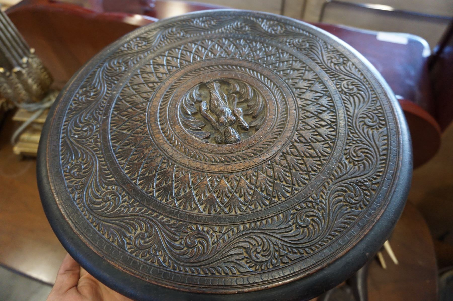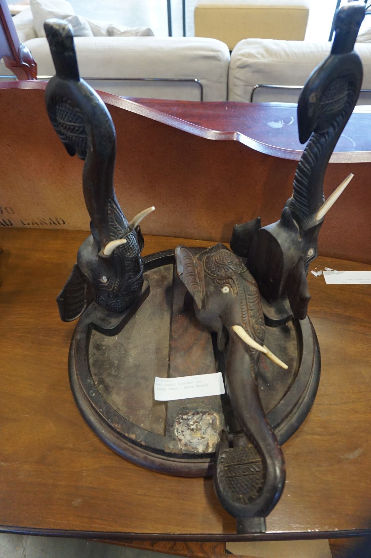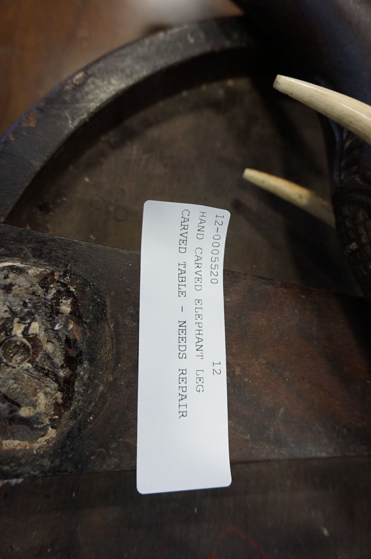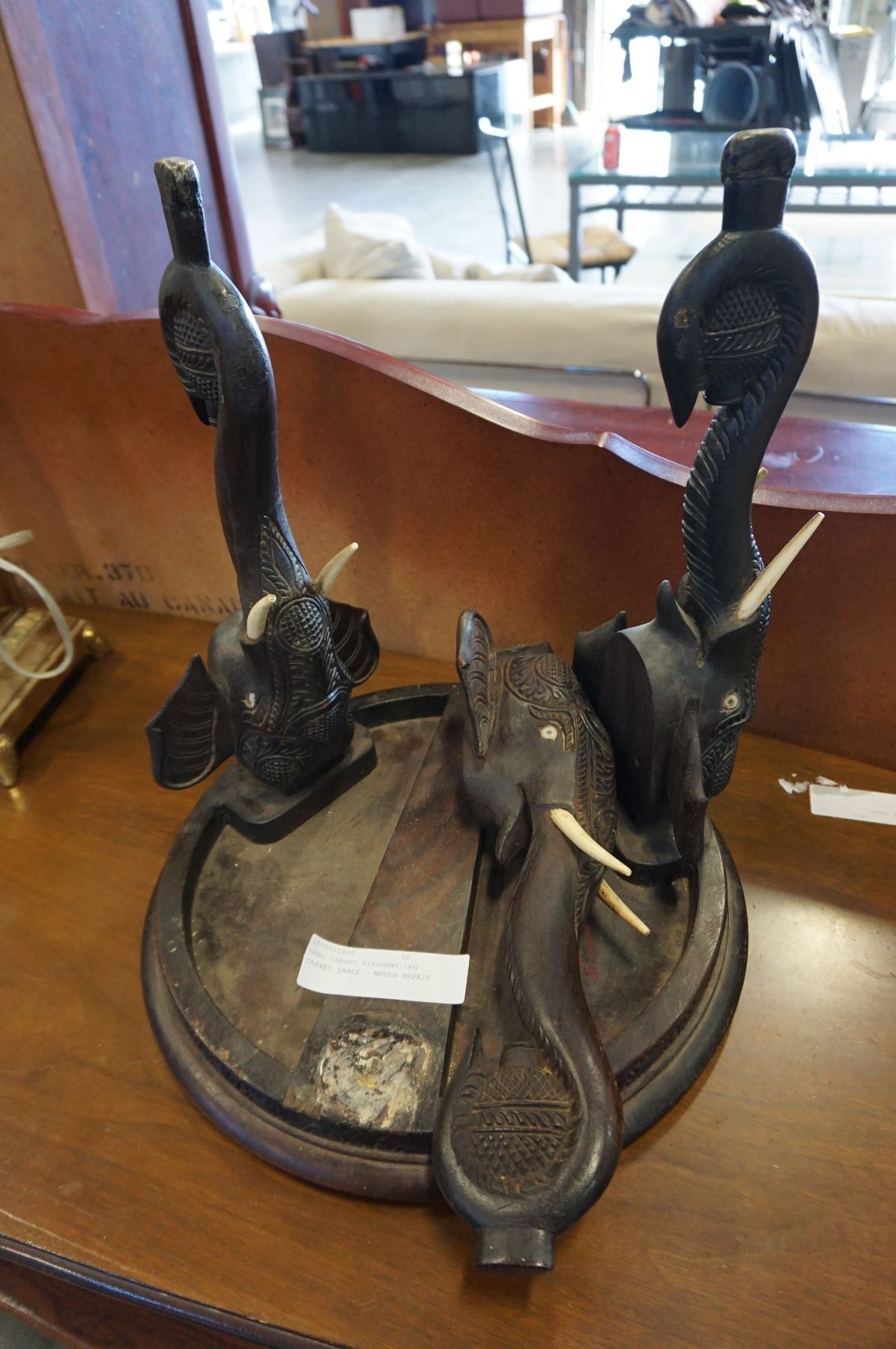 HAND CARVED ELEPHANT LEG CARVED TABLE - NEEDS REPAIR