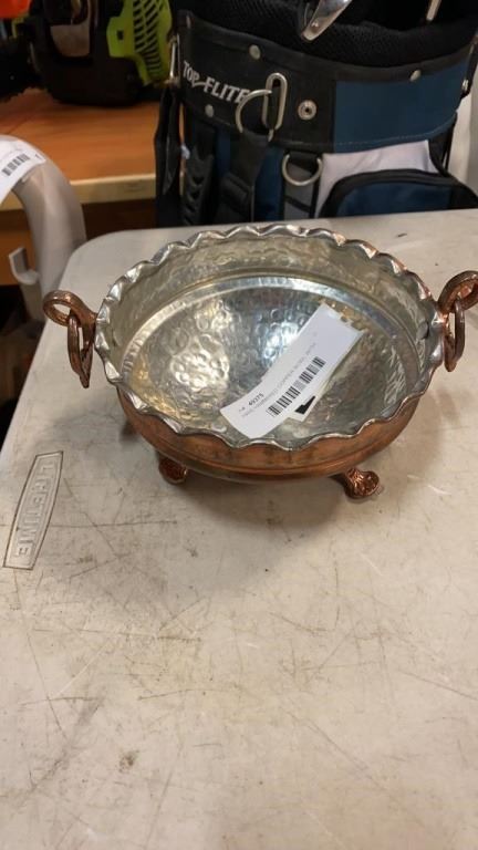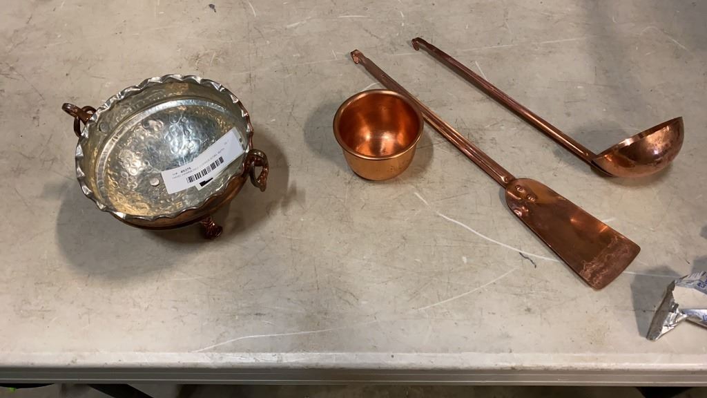 HAND HAMMERED COPPER BOWL WITH COPPER UTENSILS AND CUP