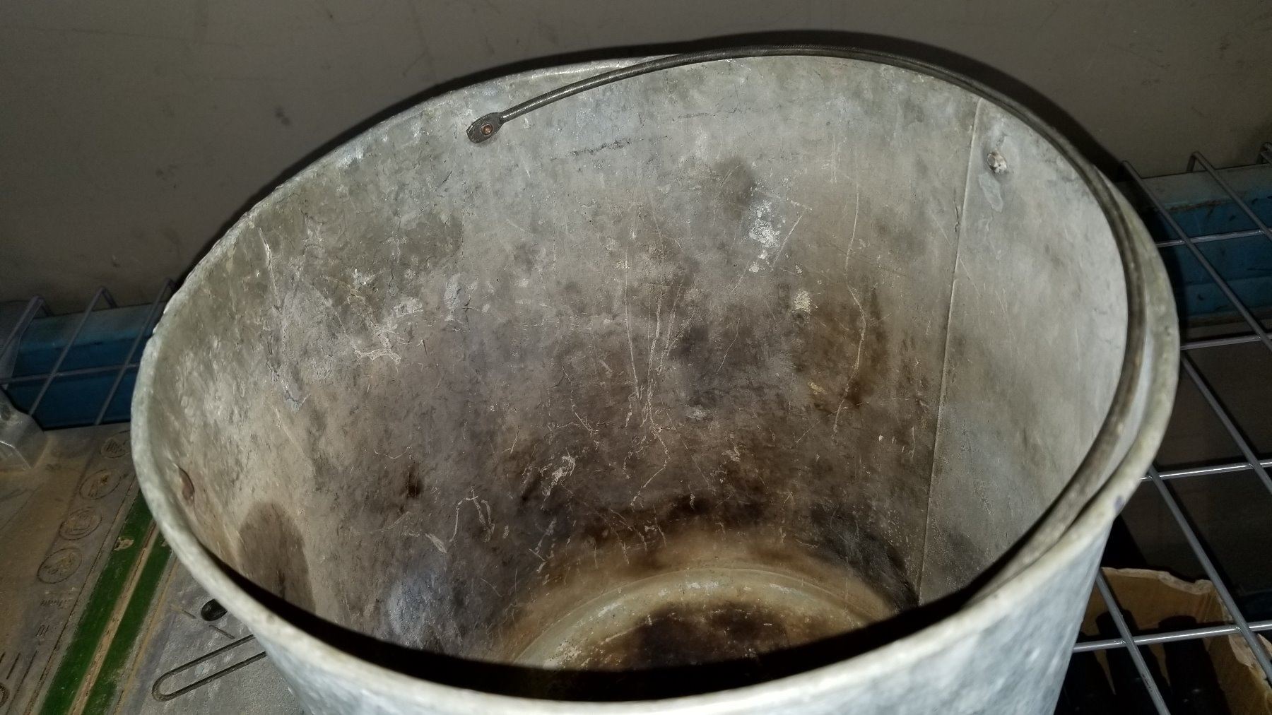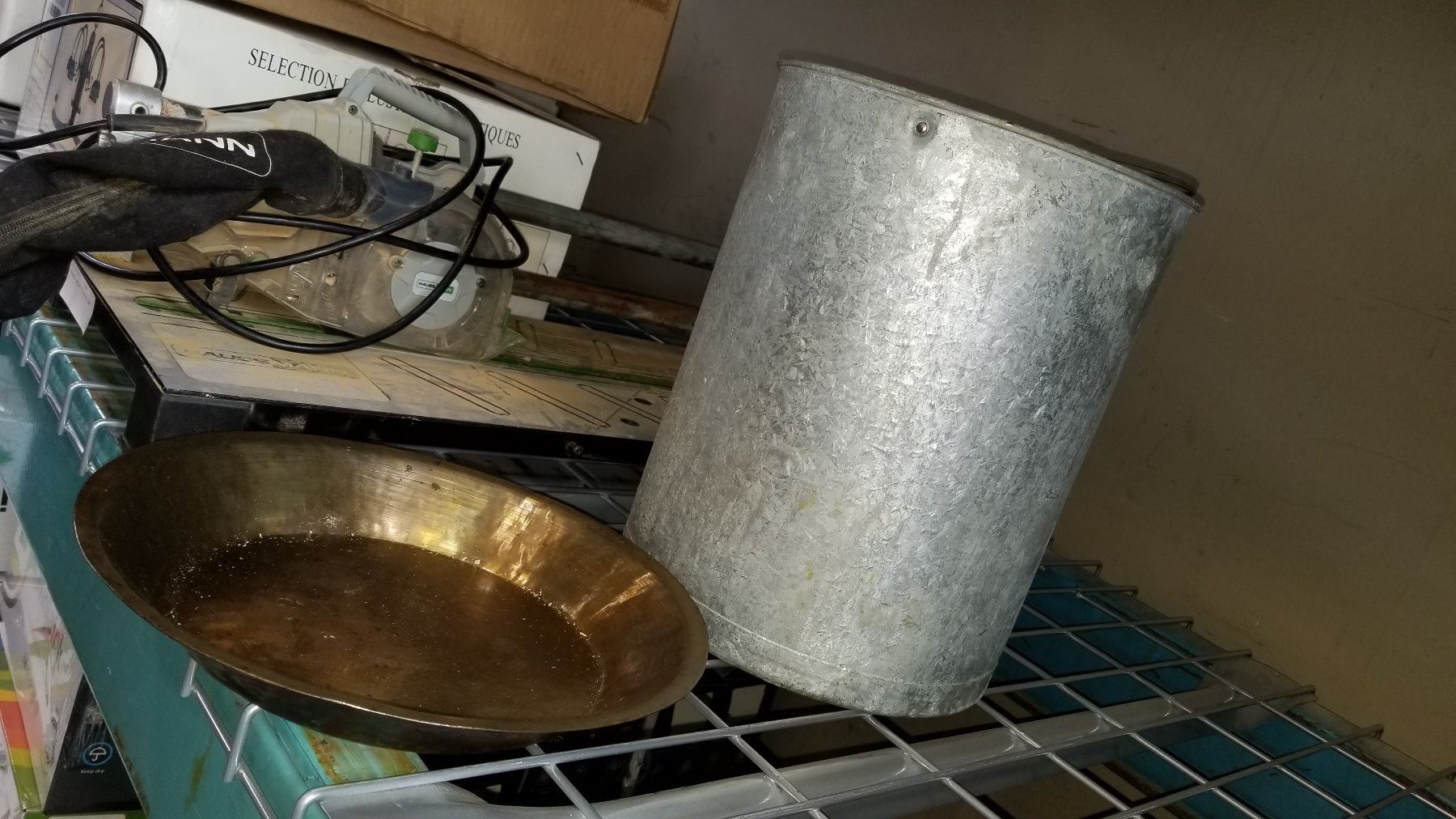 HAND HAMMERED GALVANIZED COAL BUCKET AND HAND HAMMERED GOLD PAN