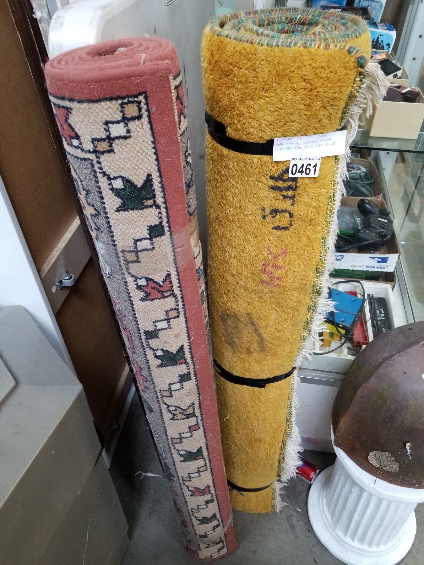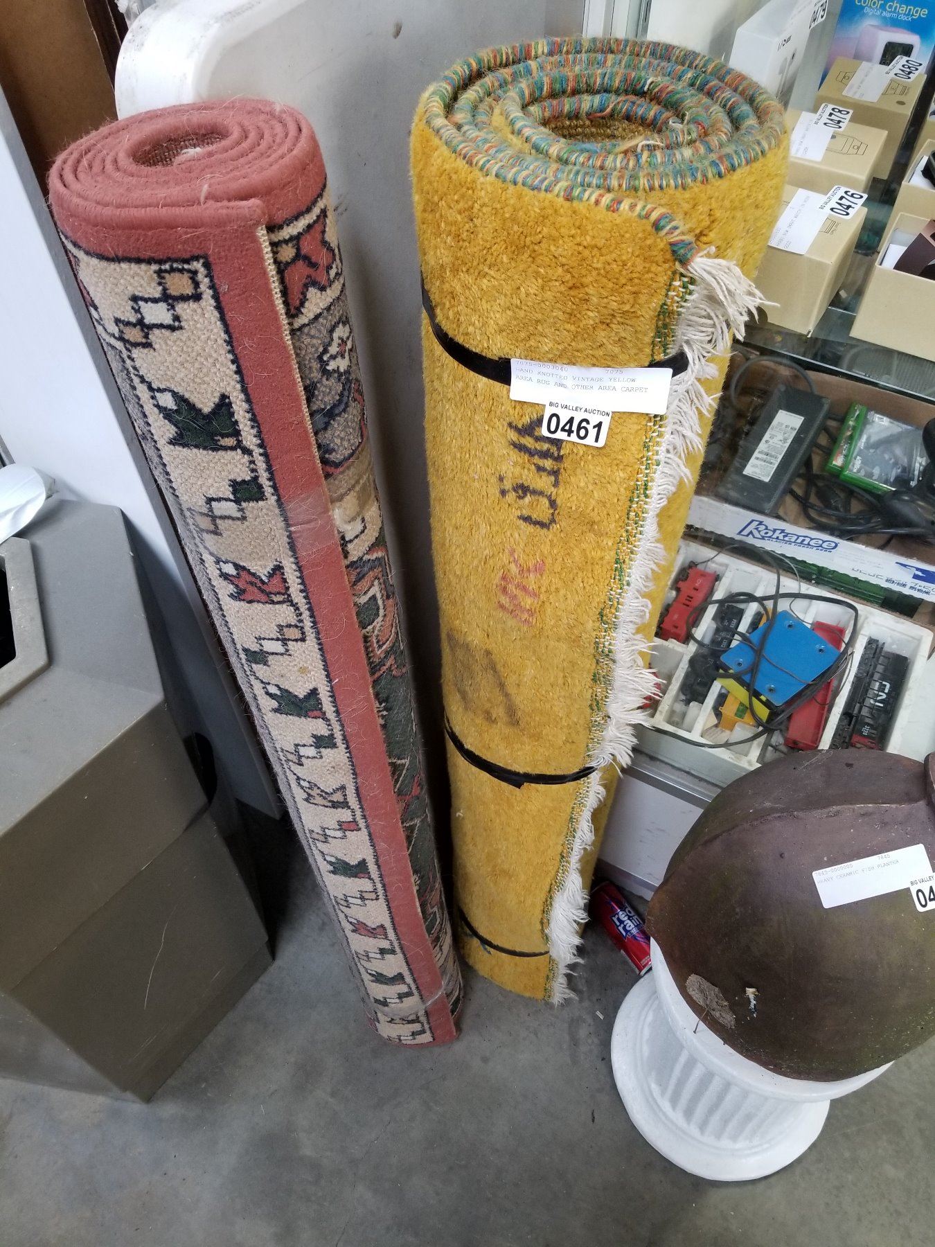 HAND KNOTTED VINTAGE YELLOW AREA RUG AND OTHER AREA CARPET