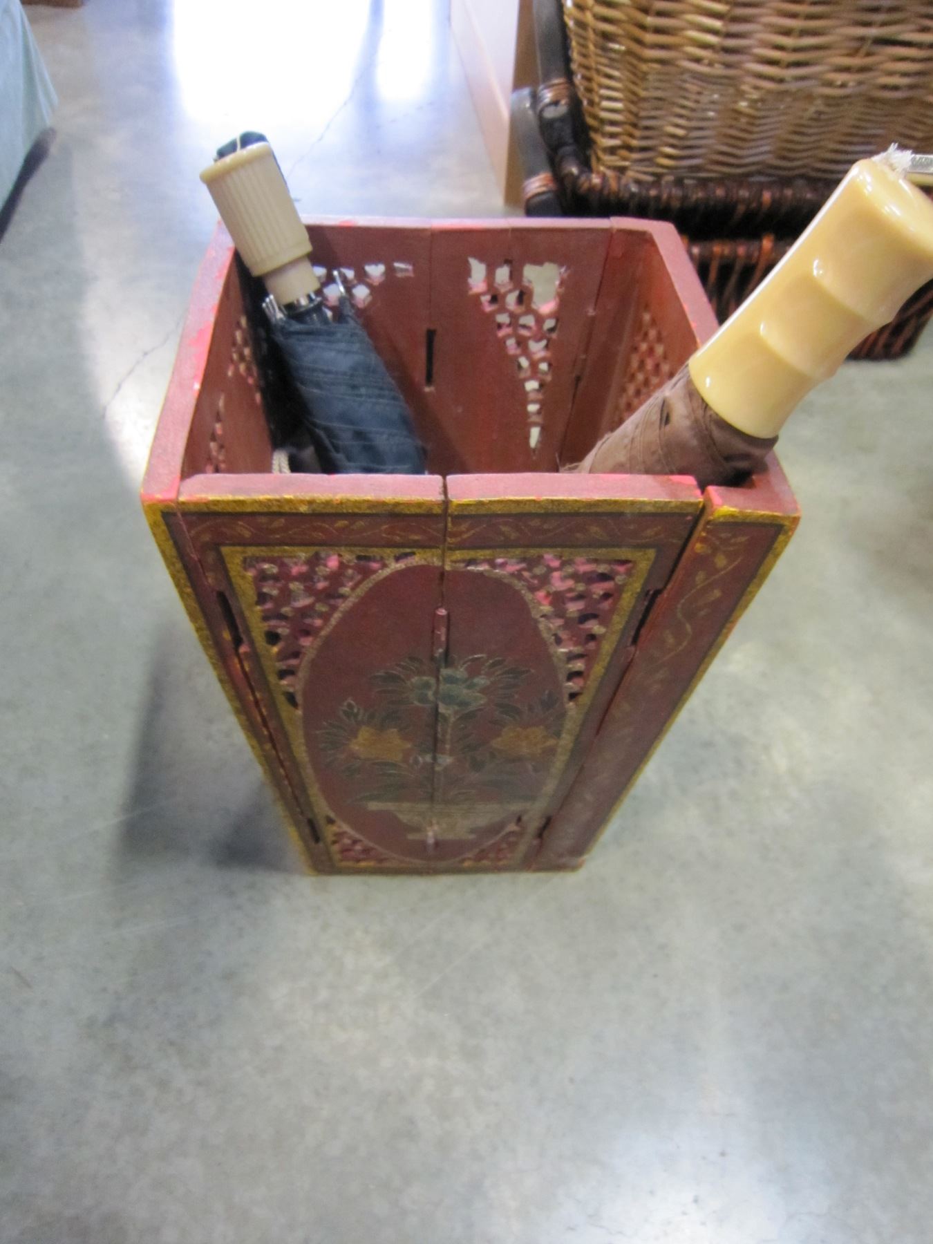 HAND PAINTED HINGED UMBRELLA STAND WITH FOUR UMBRELLAS