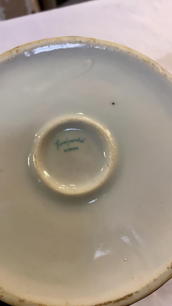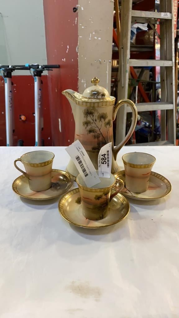 HAND PAINTED NIPPON TEAPOT AND 3 CUPS AND SAUCERS - AS FOUND
