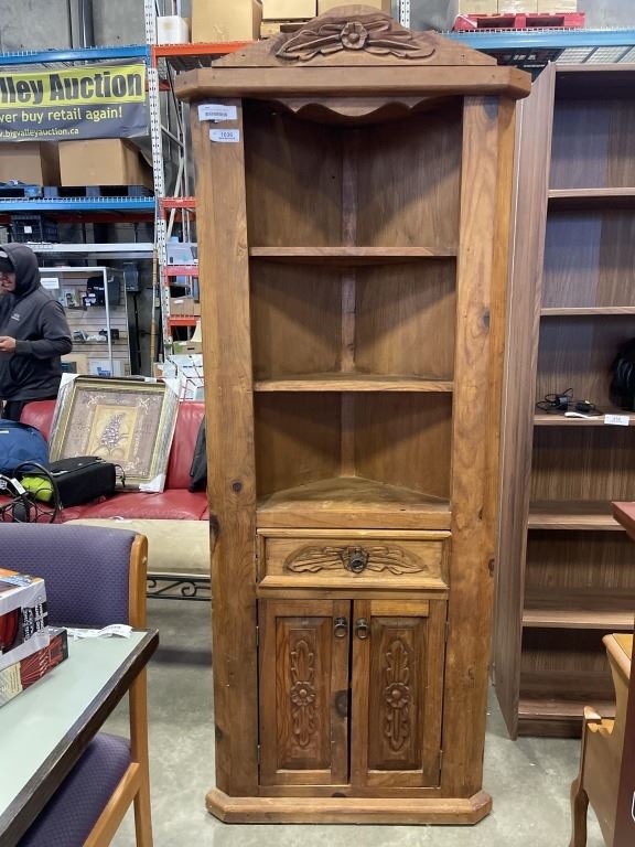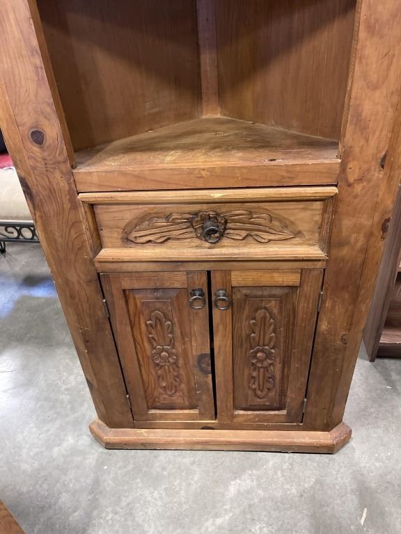HANDCARVED MADE IN MEXICO ORNATE CORNER CABINET