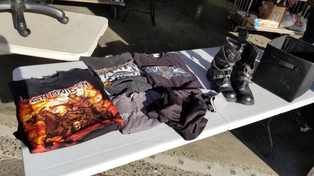 HARLEY DAVIDSON AND IRON MAIDEN SHIRTS AND LEATHER H AND H BOOTS
