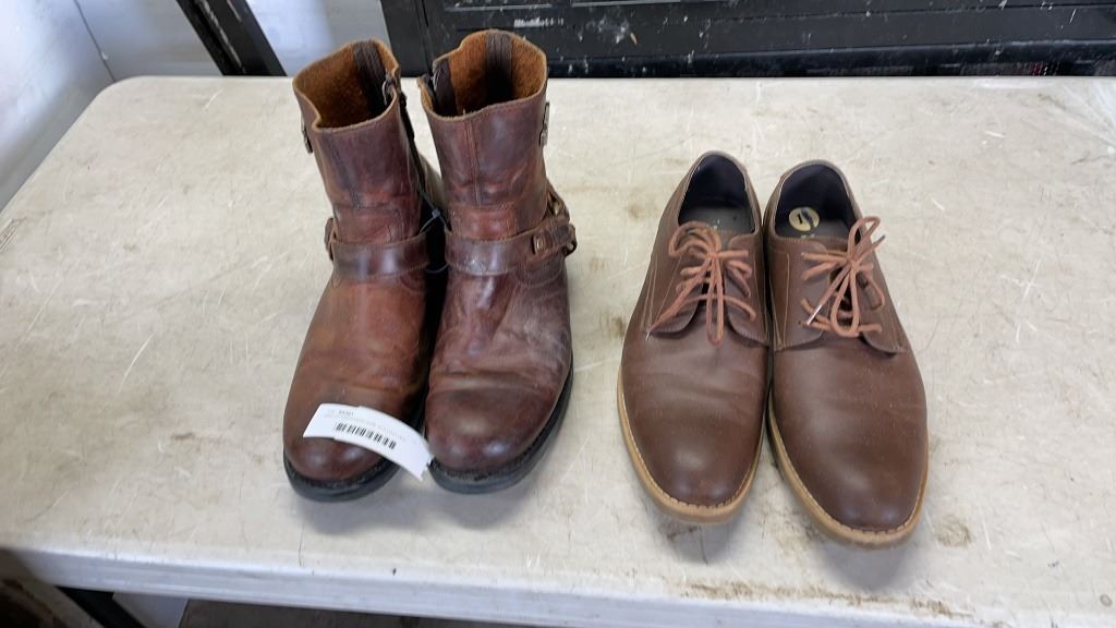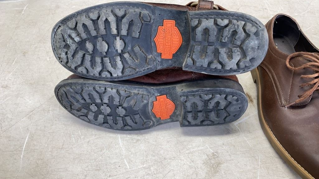 HARLEY DAVIDSON SIZE 10.5 LEATHER BOOTS AND SIZE 11 PERRY ELLIS PORTFOLIO FORMAL SHOES